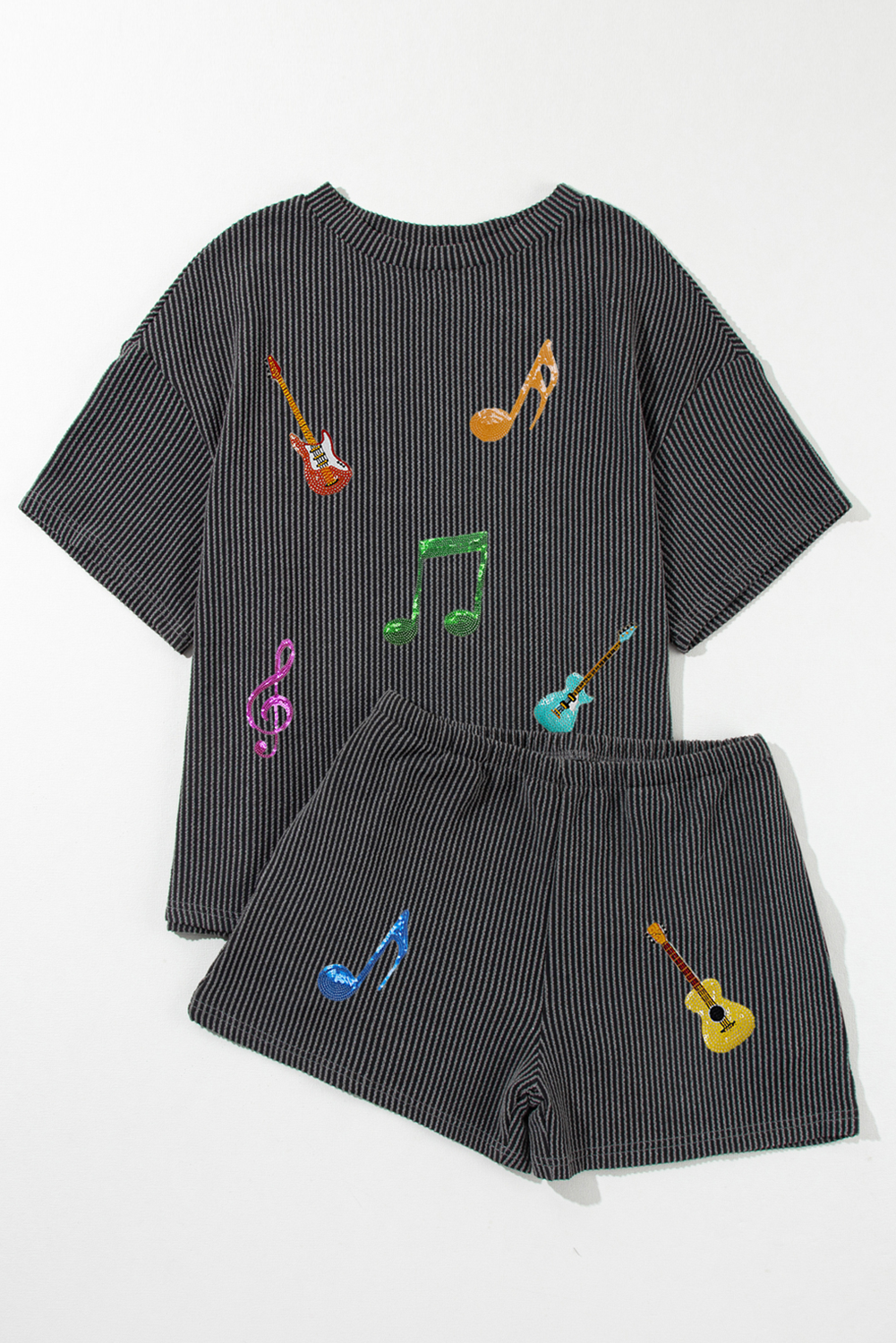 Carbon Grey Twisted Rib Texture Guitar Music Note Patched 2pcs Short Set