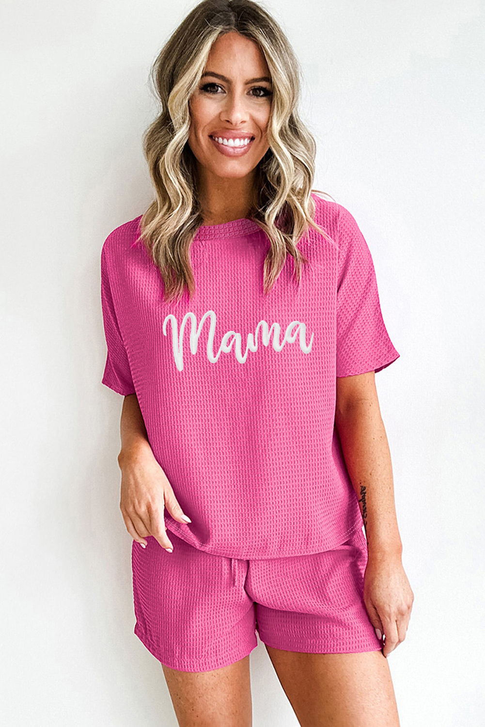 Rose Red Waffle mama Embroidered Tee and Drawstring Shorts