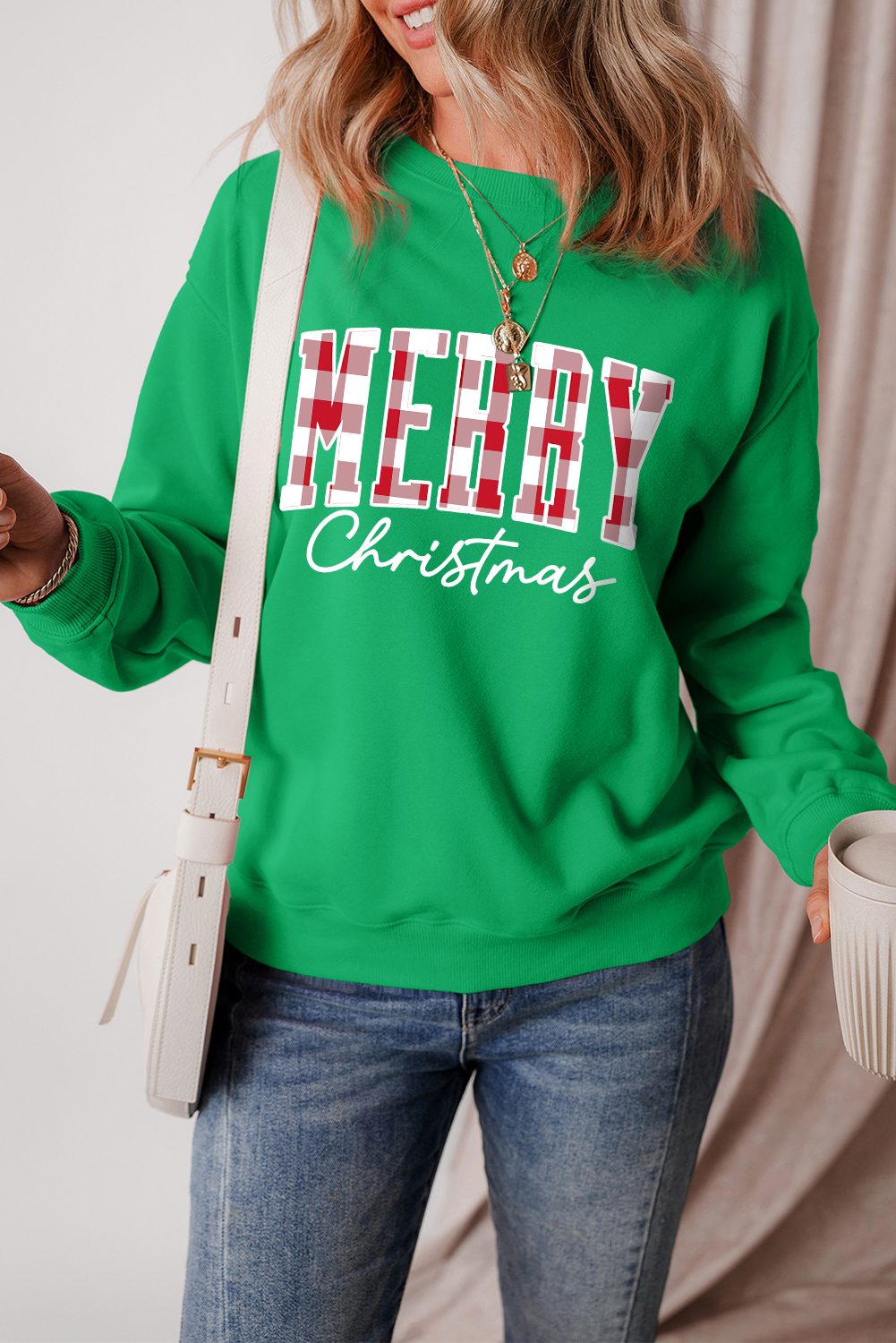 Dark Green Merry Christmas Heat Transfer Graphic Sweatshirt