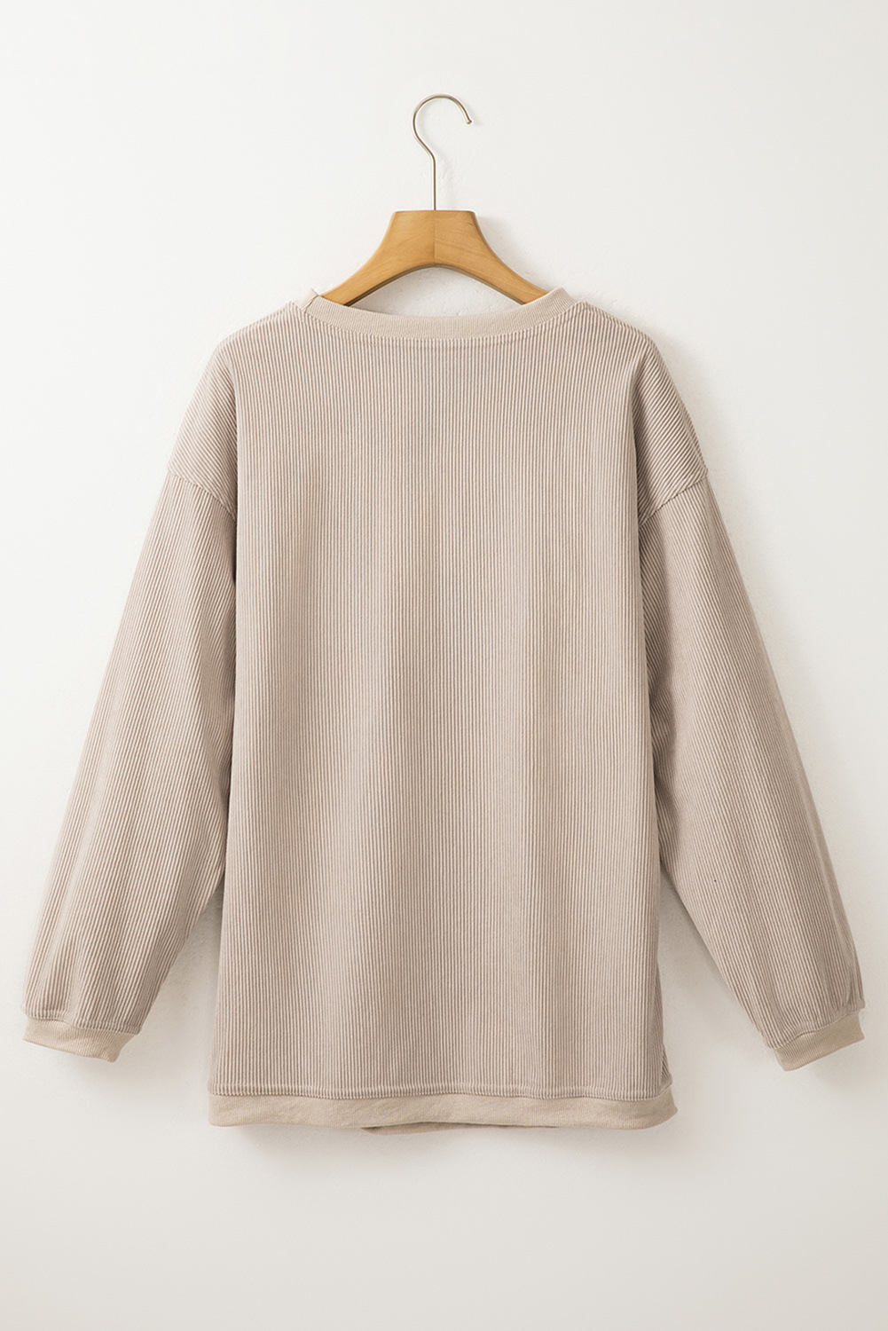 Smoke Gray Western Cowboy Boots Graphic Corded Loose Sweatshirt