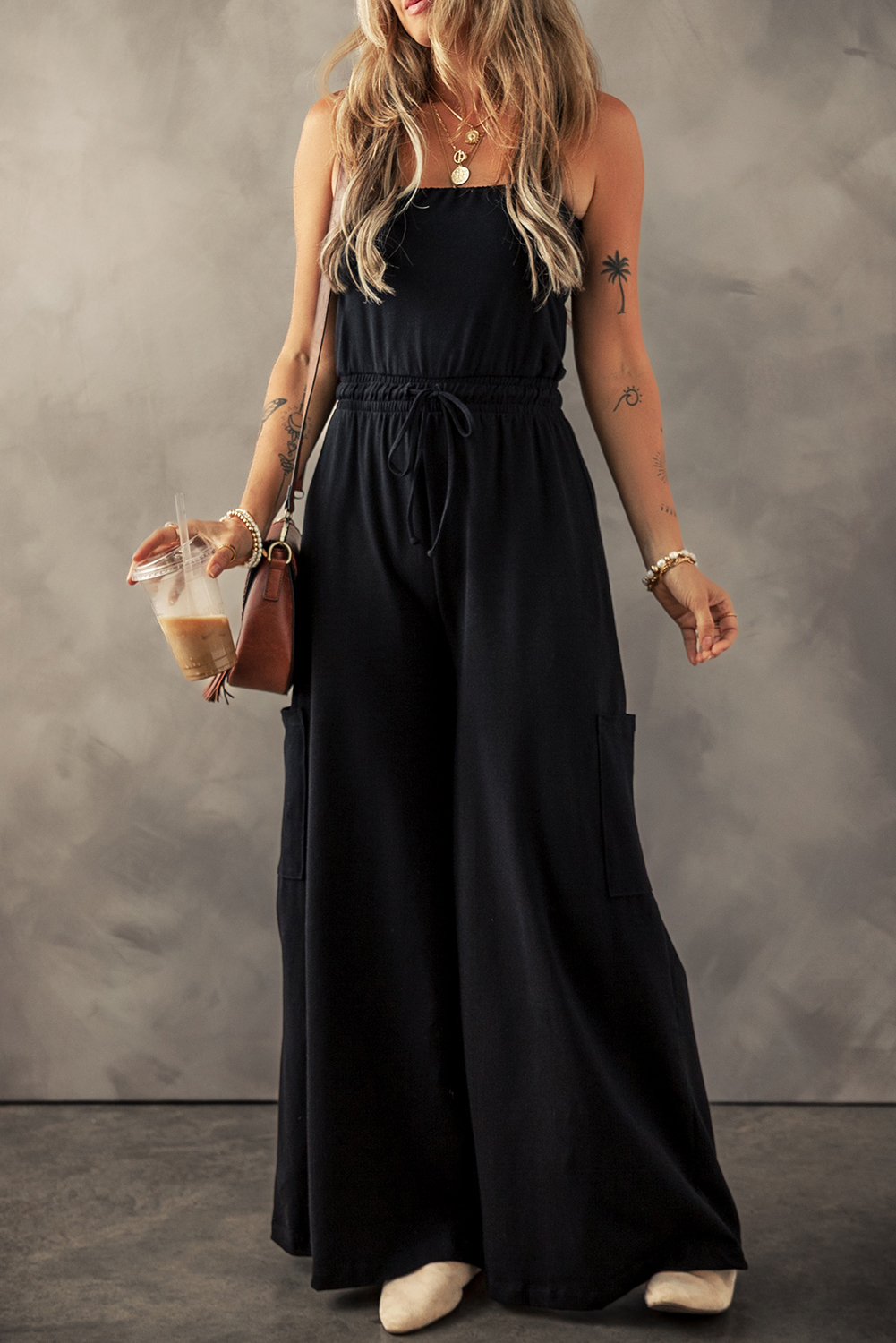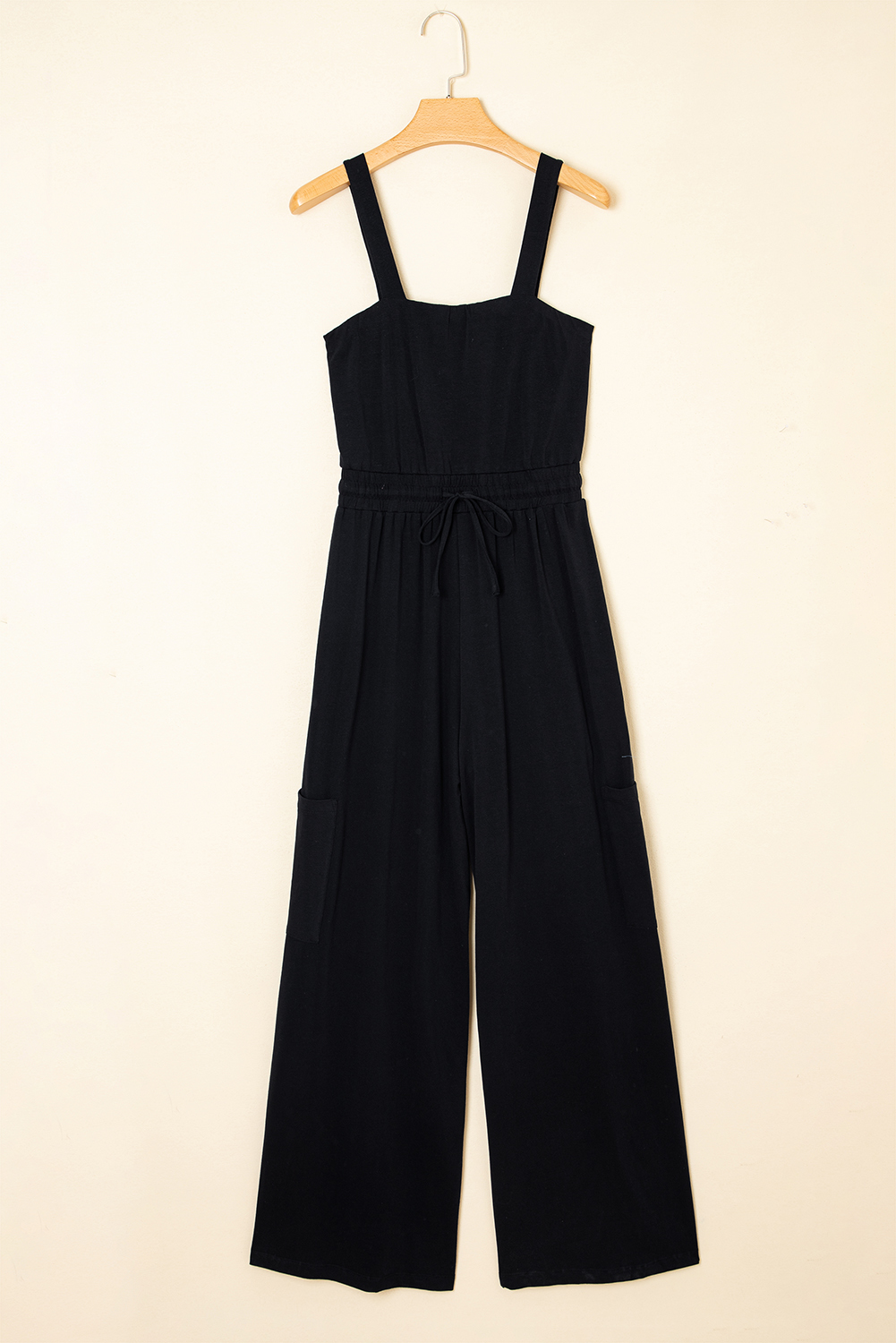 Black Drawstring Waist Spaghetti Straps Jumpsuit