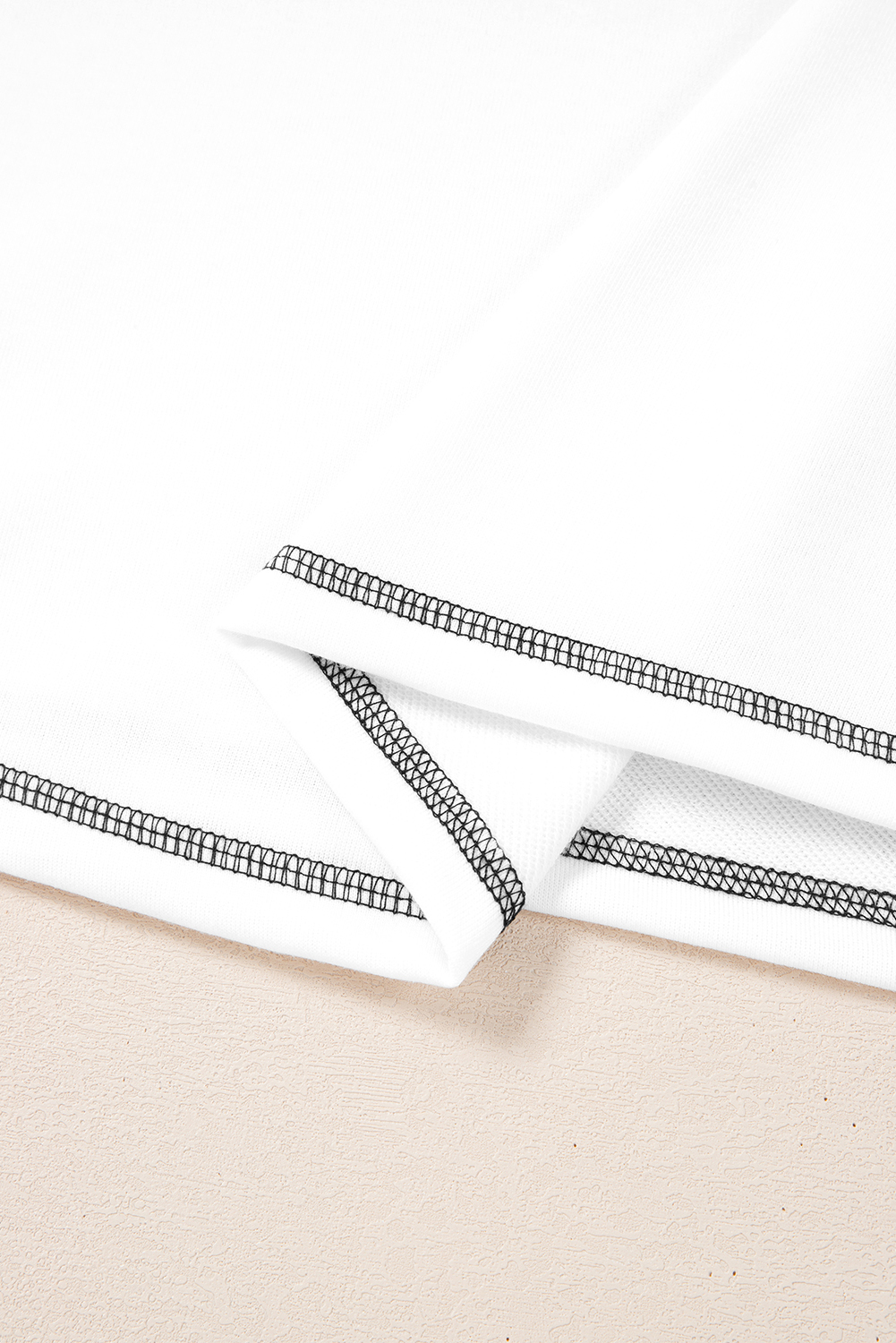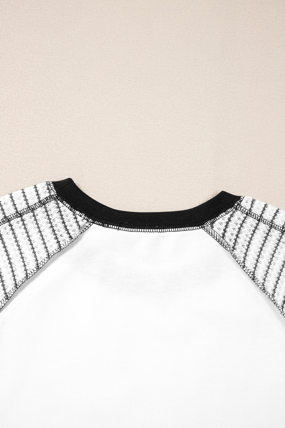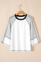White Striped Bracelet Sleeve Raglan Patchwork Top