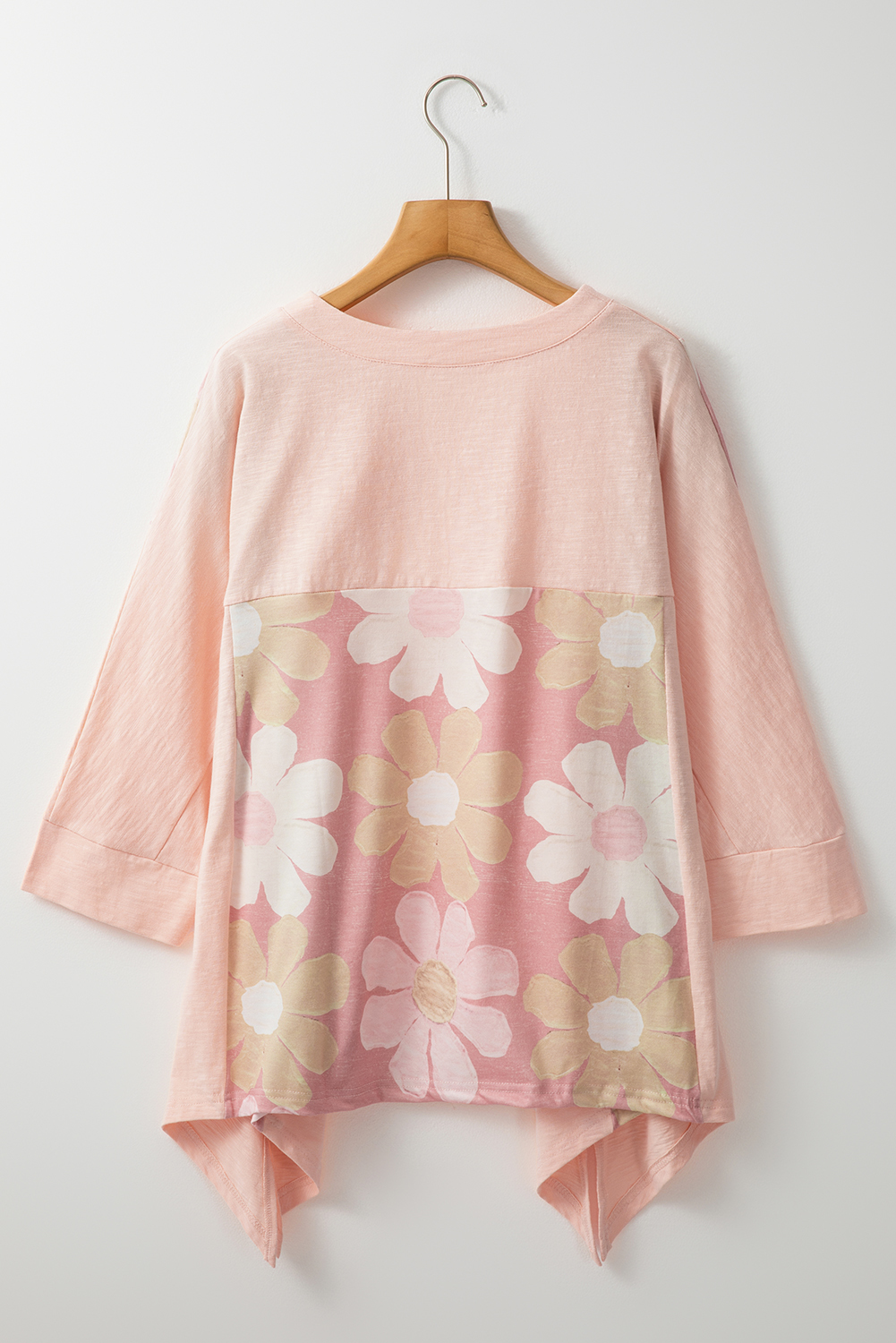 Pink Flower Patchwork Exposed Seam Oversized High Low Top