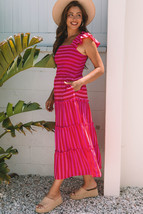 Red Stripe Ruffled Straps Smocked Tiered Long Dres...