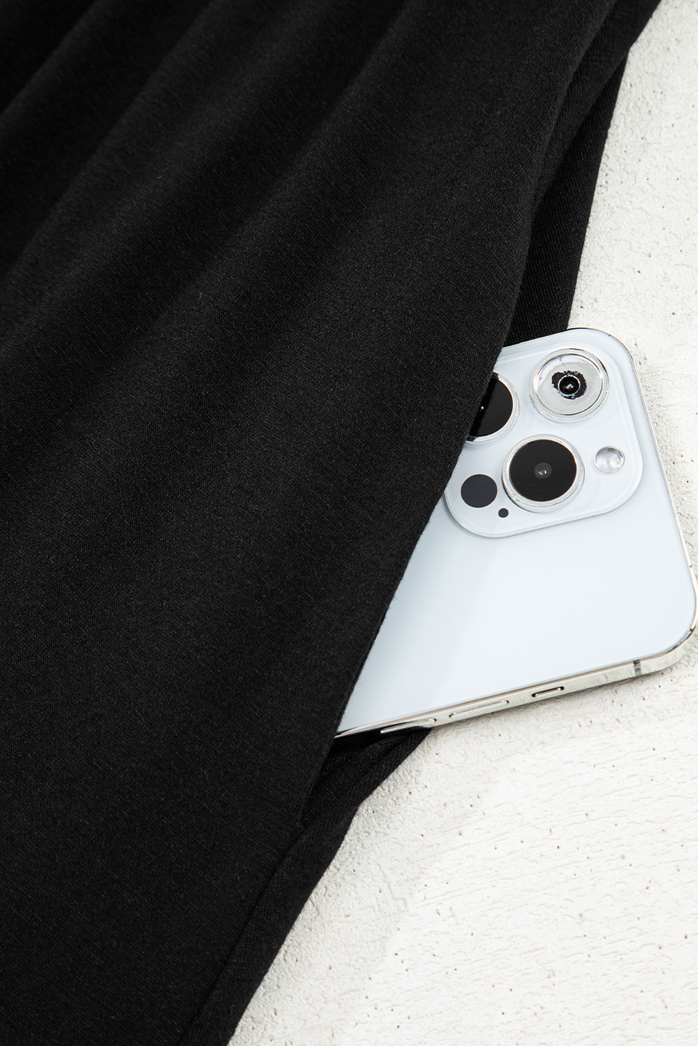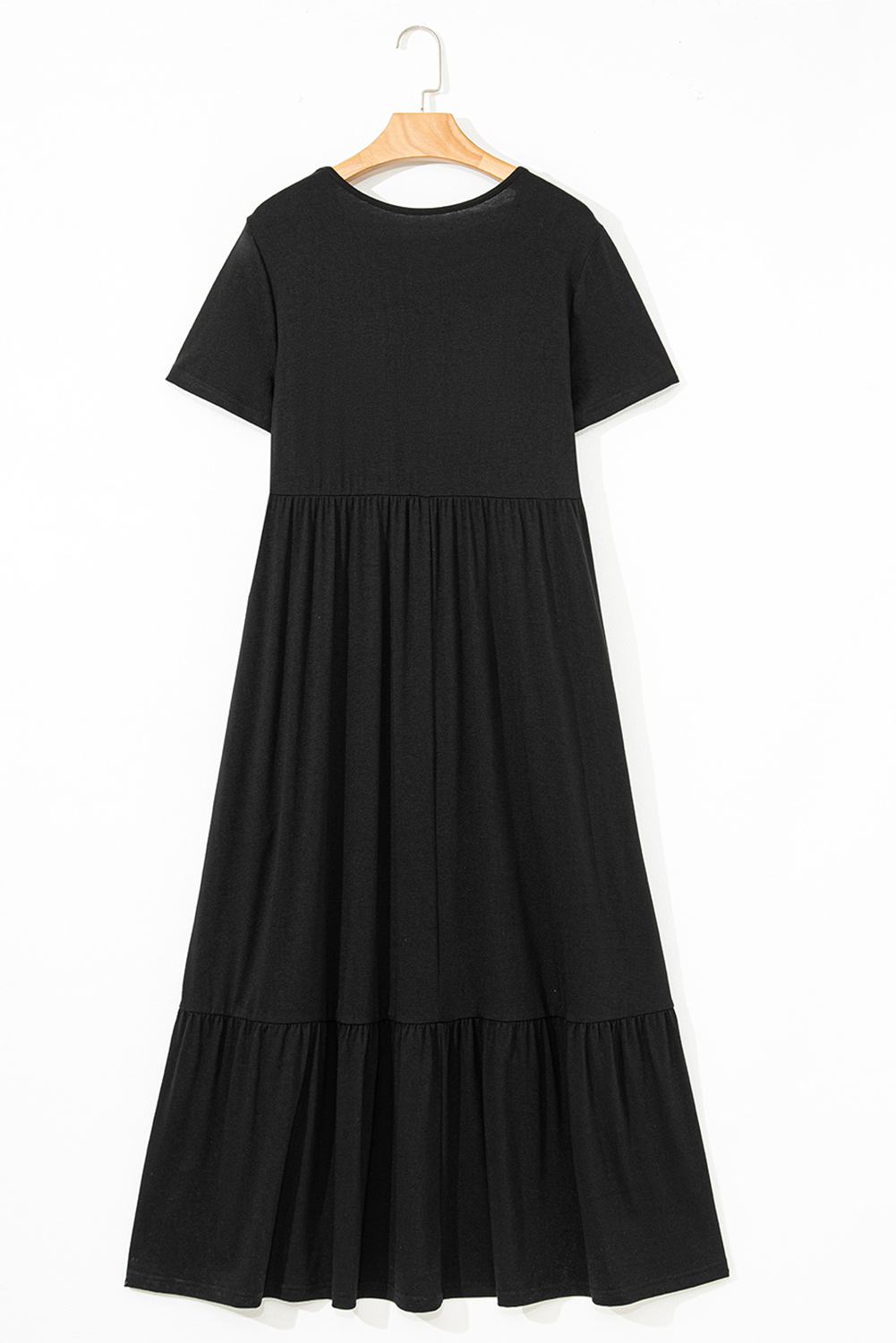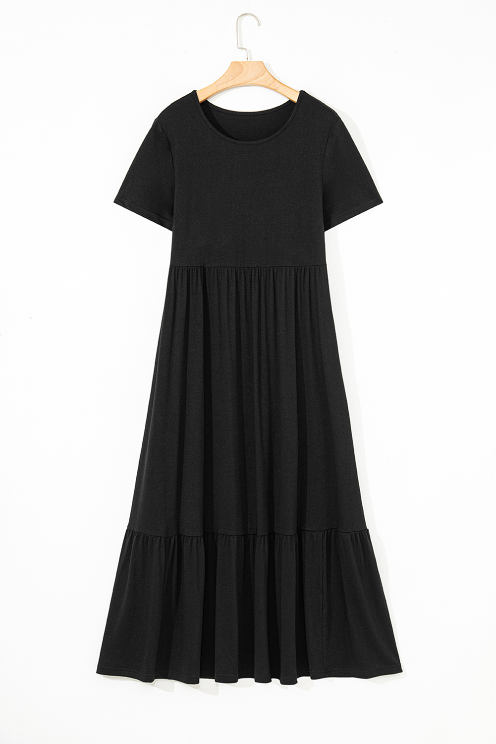 Black Solid Color T-shirt High Waist Pocketed Long Dress