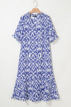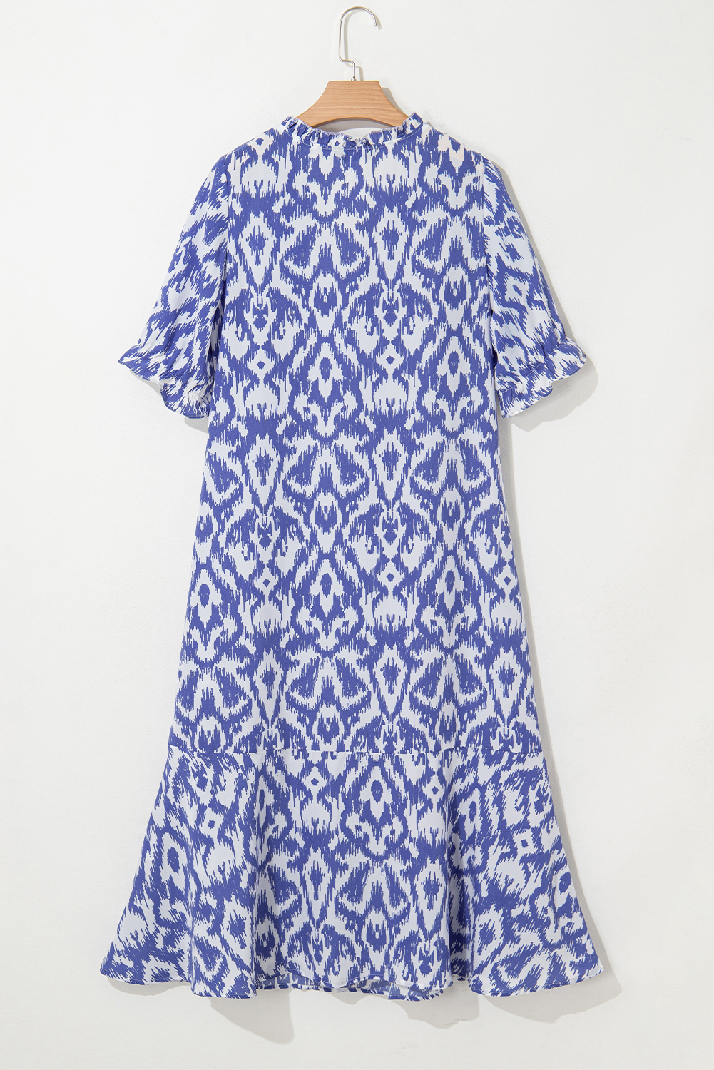 Sky Blue Geometric Print V Neck Casual Long Dress