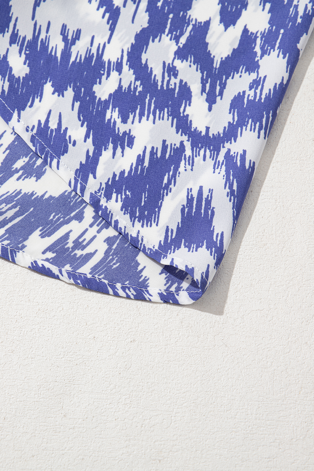Sky Blue Abstract Print V Neck Dolman Sleeve Ruffl...