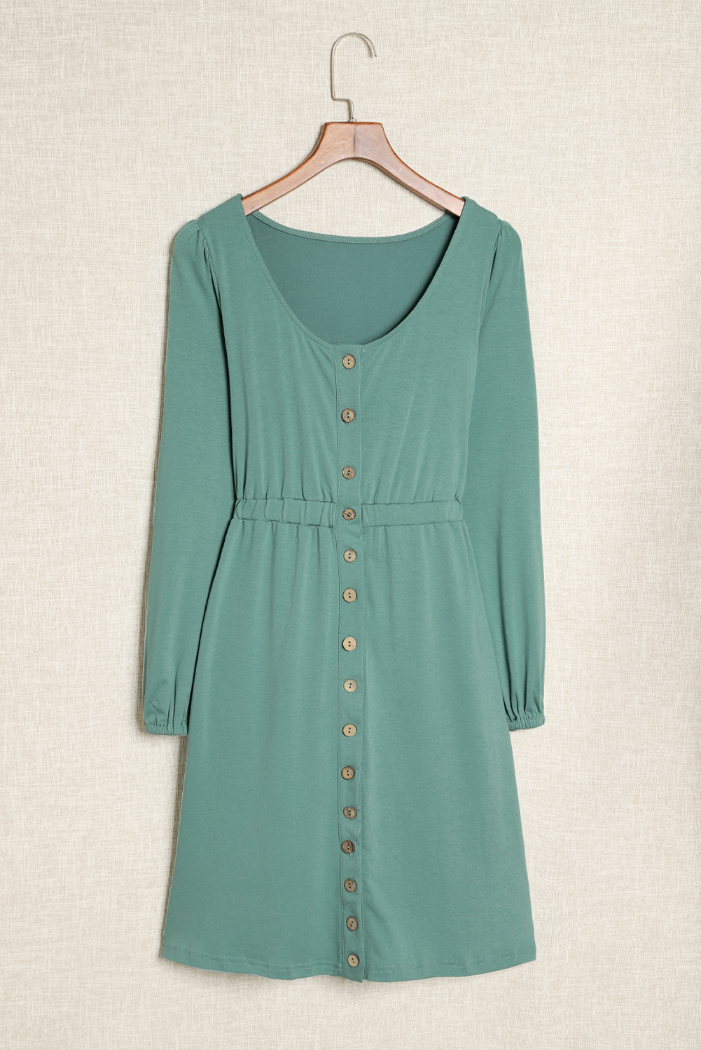 Green Button Up High Waist Long Sleeve Dress and 50 similar items