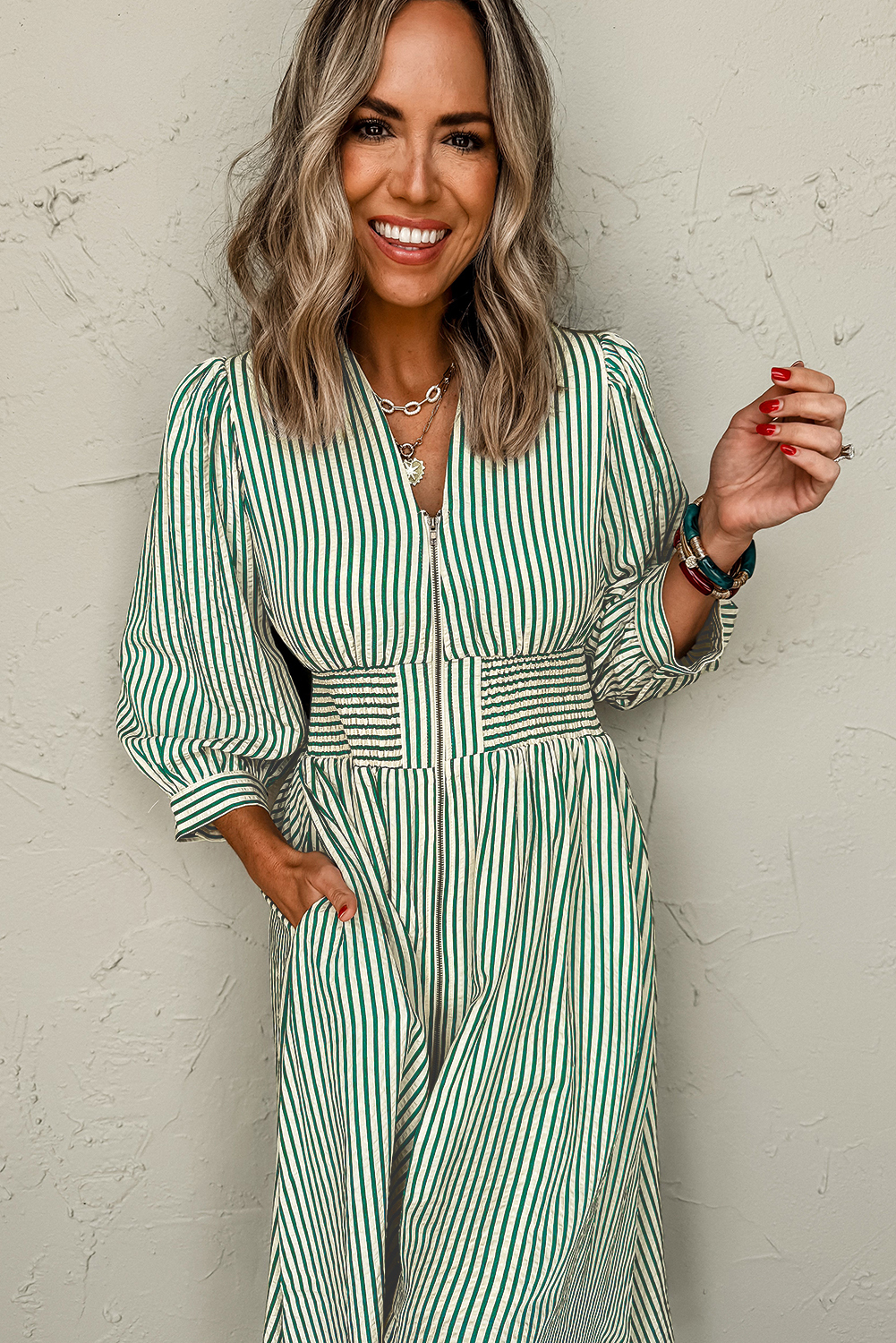 Green Stripe V Neck Zip Front Cinched High and 50 similar items