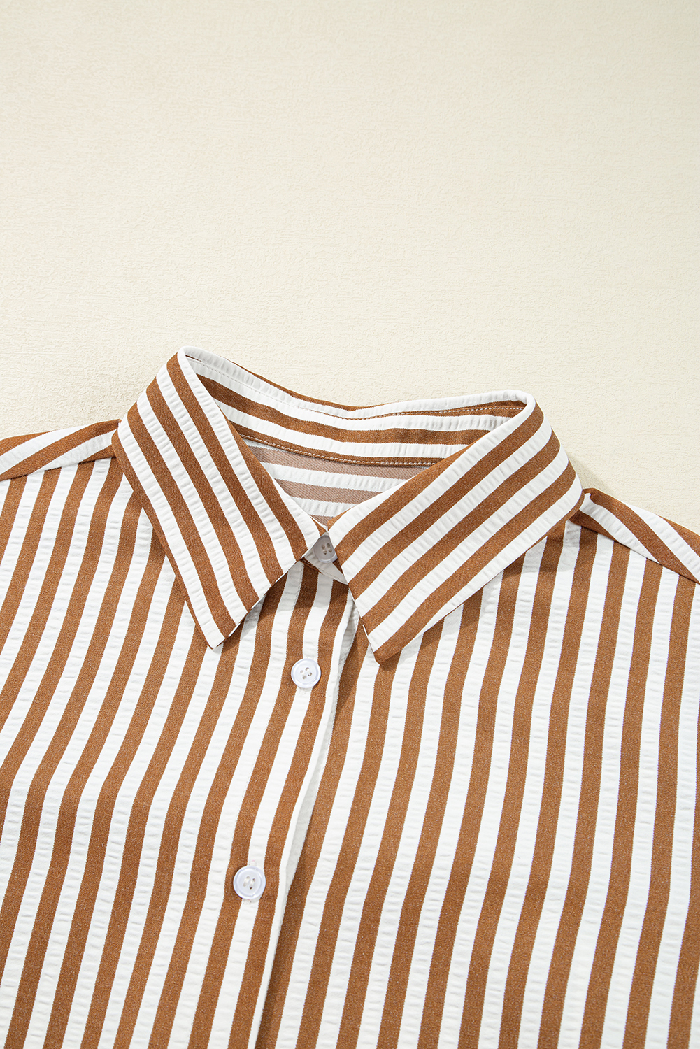 Brown Stripe Ruffled Hem Collared Long and 50 similar items