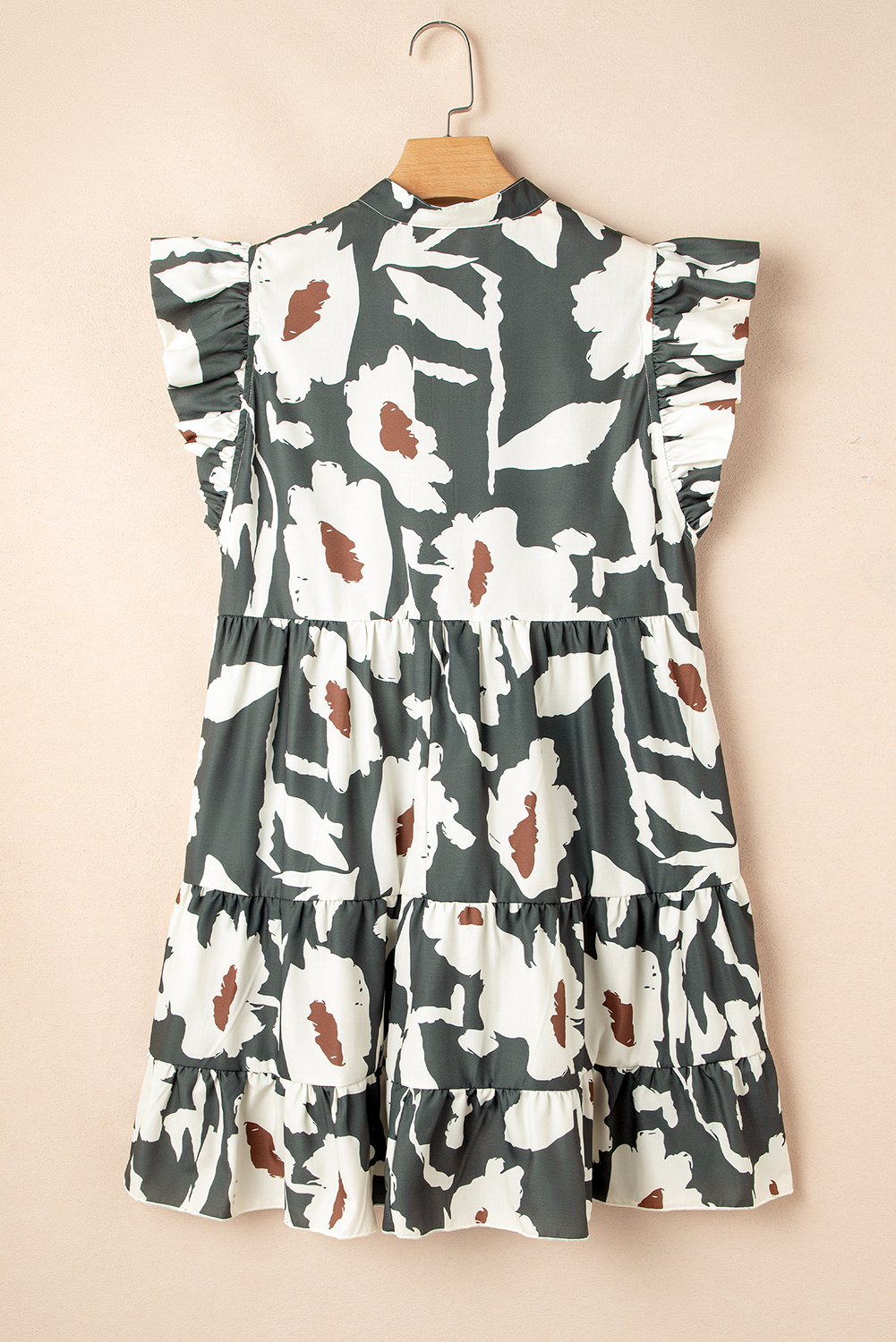 Floral Flutter Sleeve Buttons Ruffled Hem Mini Dress