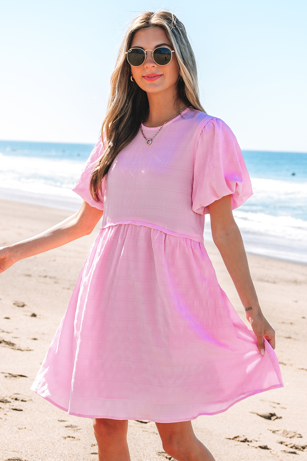 Bonbon Textured Bubble Sleeve High Waist Mini Dress