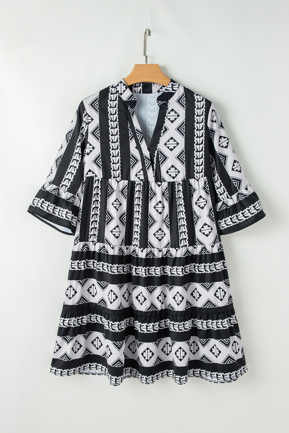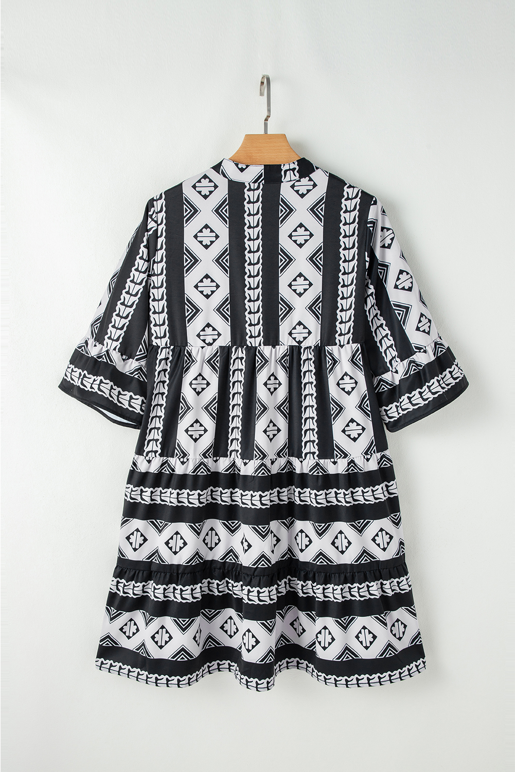 Black Geometric Print V Neck Ruffled Dress and 50 similar items