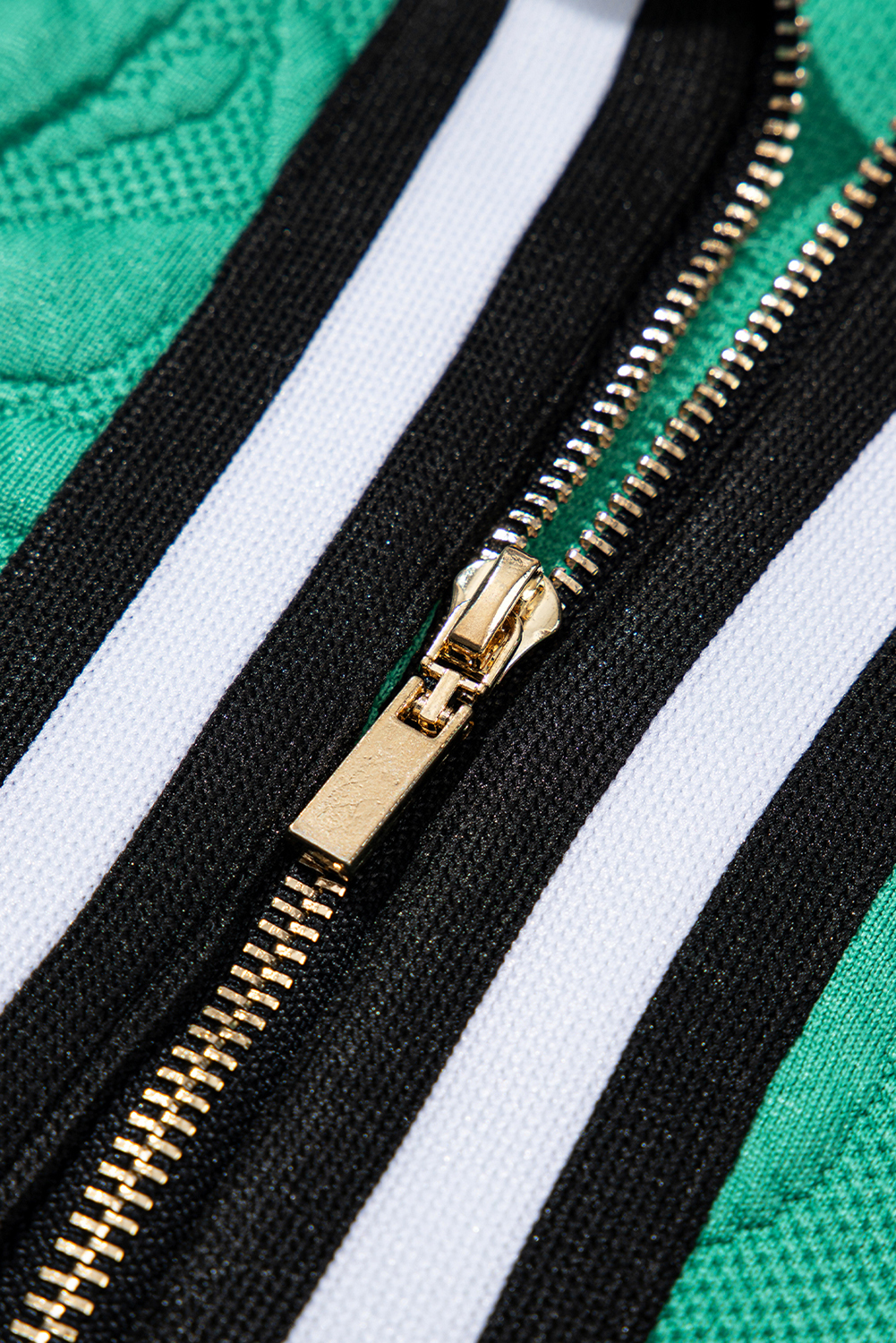 Sea Green Jacquard Textured Quarter Zipper Shift Mini Dress