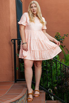 White Swiss Dot Smocked Frilled Neckline Short Sle...