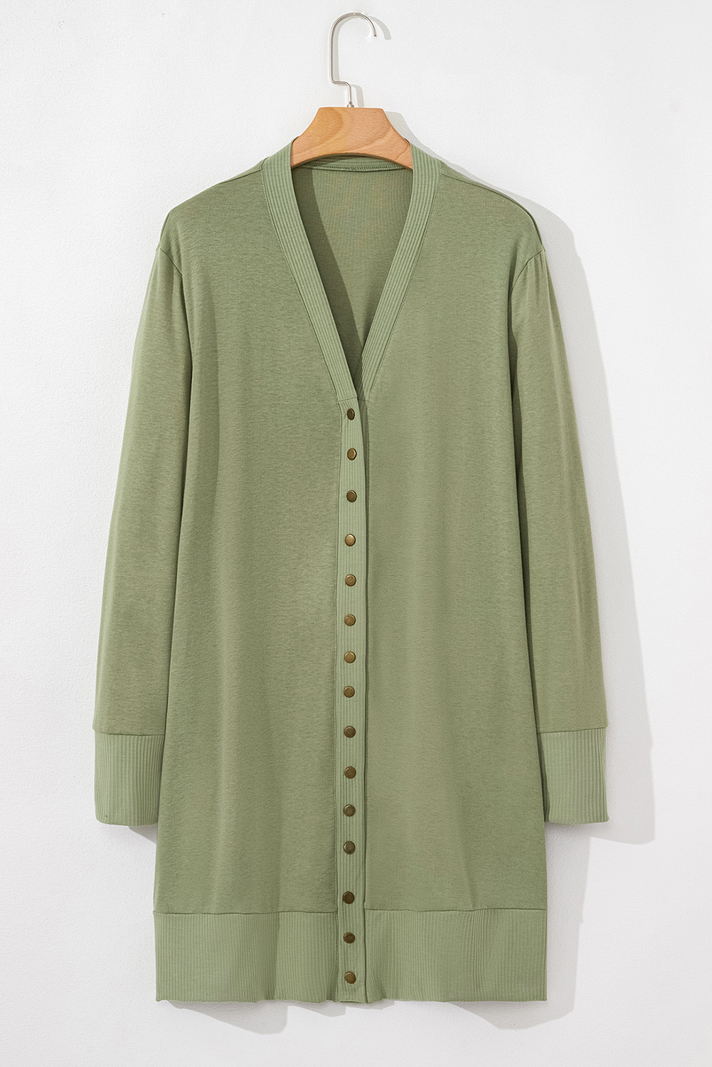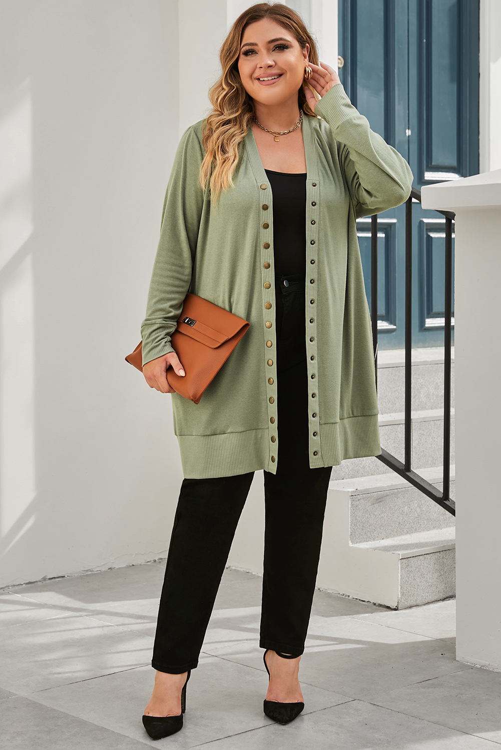 Green Plus Size Snap Buttons Front Knit Cardigan