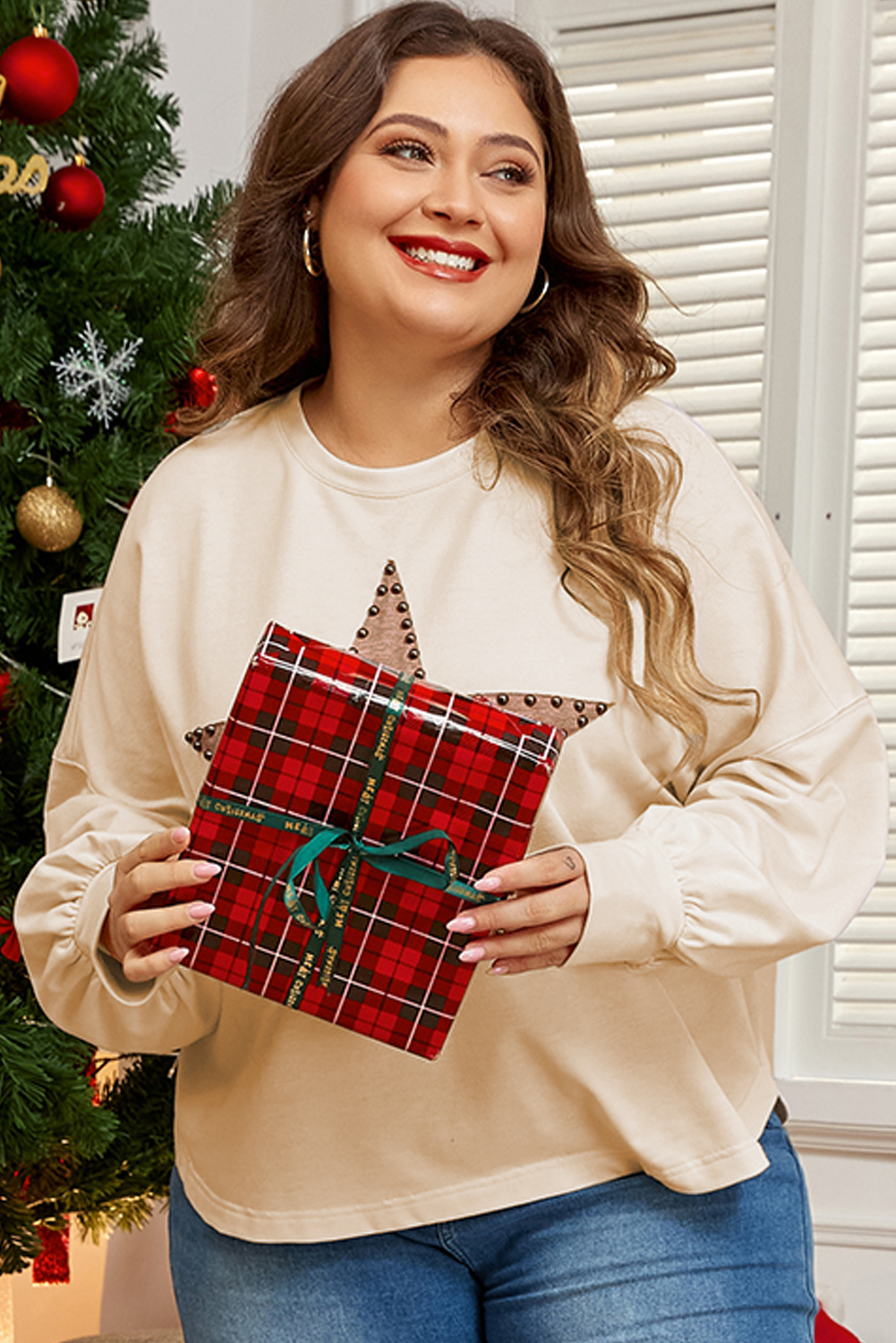 Beige Star Shape Studded Crew Neck Plus Size and 50 similar items