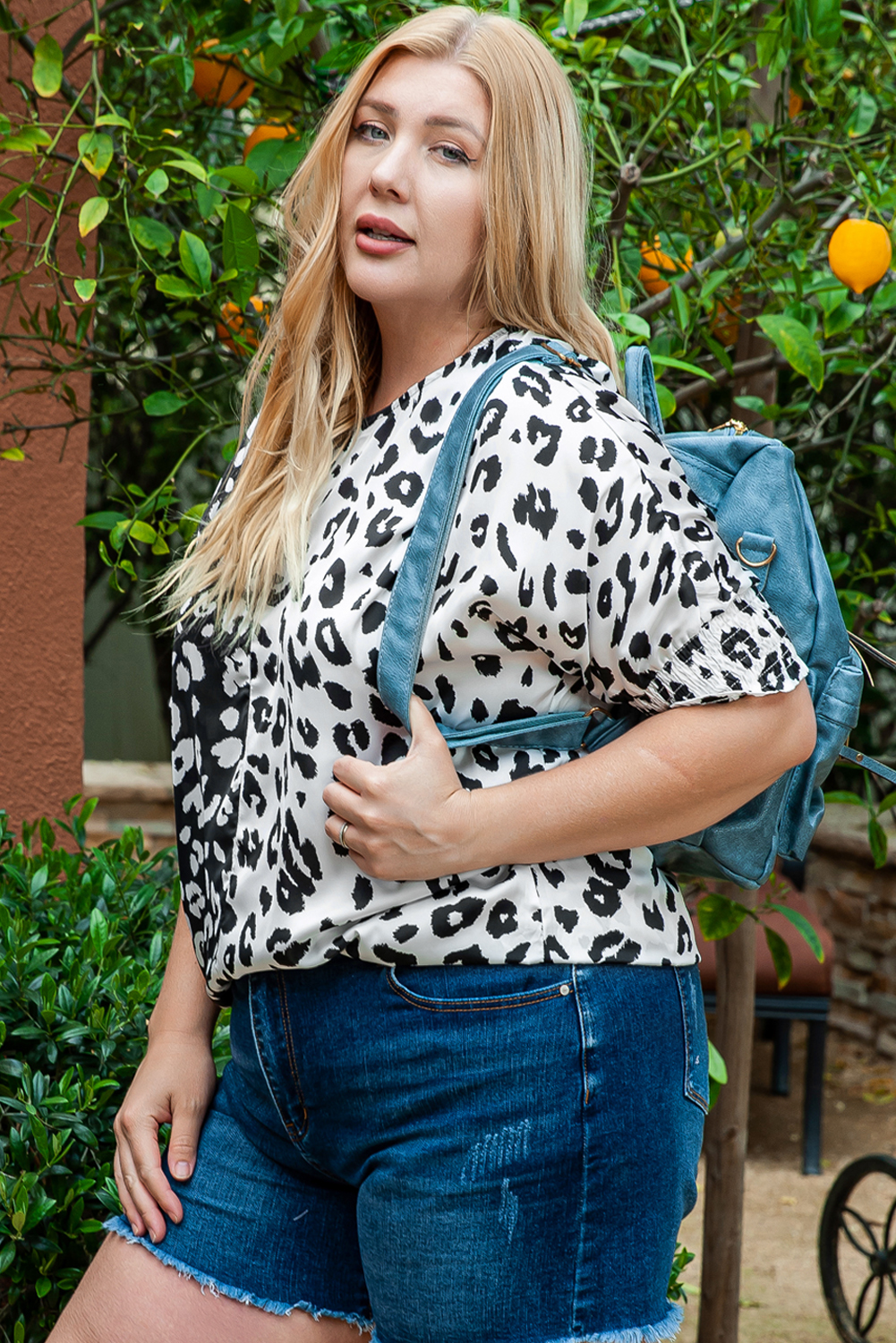 Black Plus Size Contrast Leopard Half Sleeve Blouse