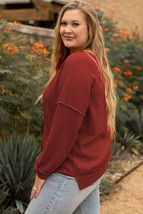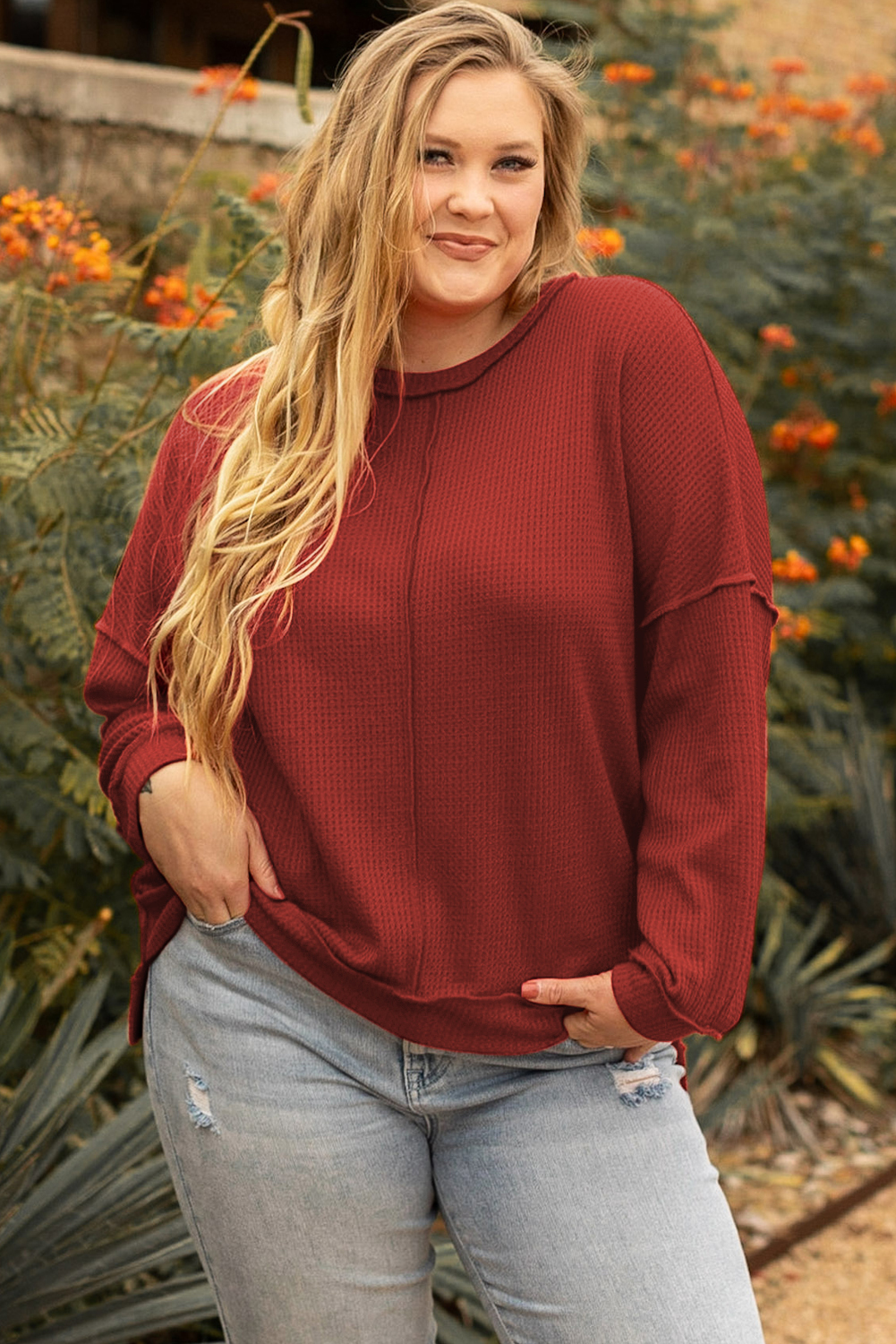 Gold Flame Exposed Seam Detail Waffle Knit Plus Size Top