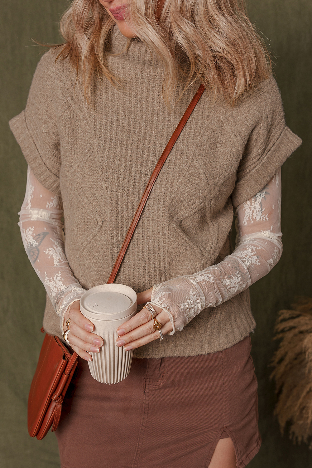 Smoke Gray Textured Knit High Neck Sweater T and similar items