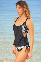 Black Layered-Style Floral Tankini with Triangular Briefs