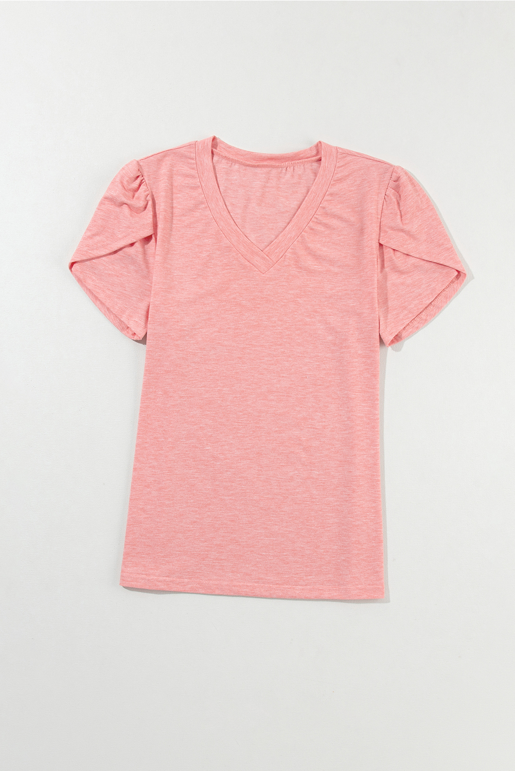 Rose Tan Fashion Petal Sleeve V Neck T Shirt