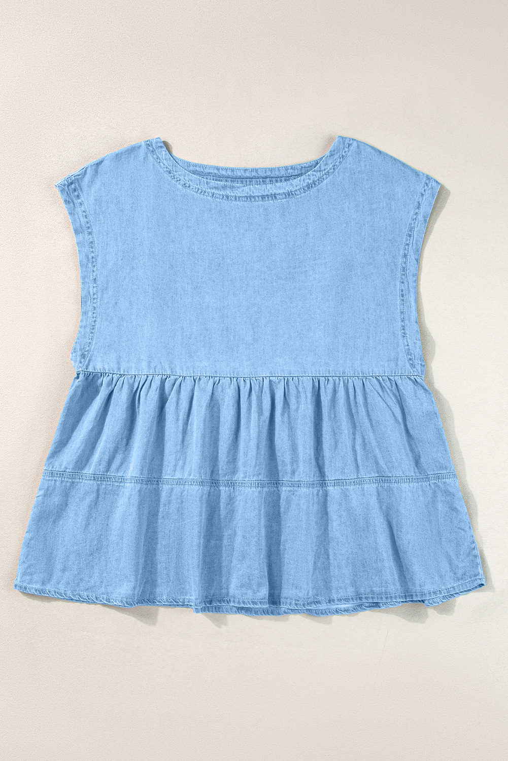 Beau Blue Trendy Stitching Detail Denim Peplum Top