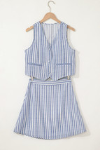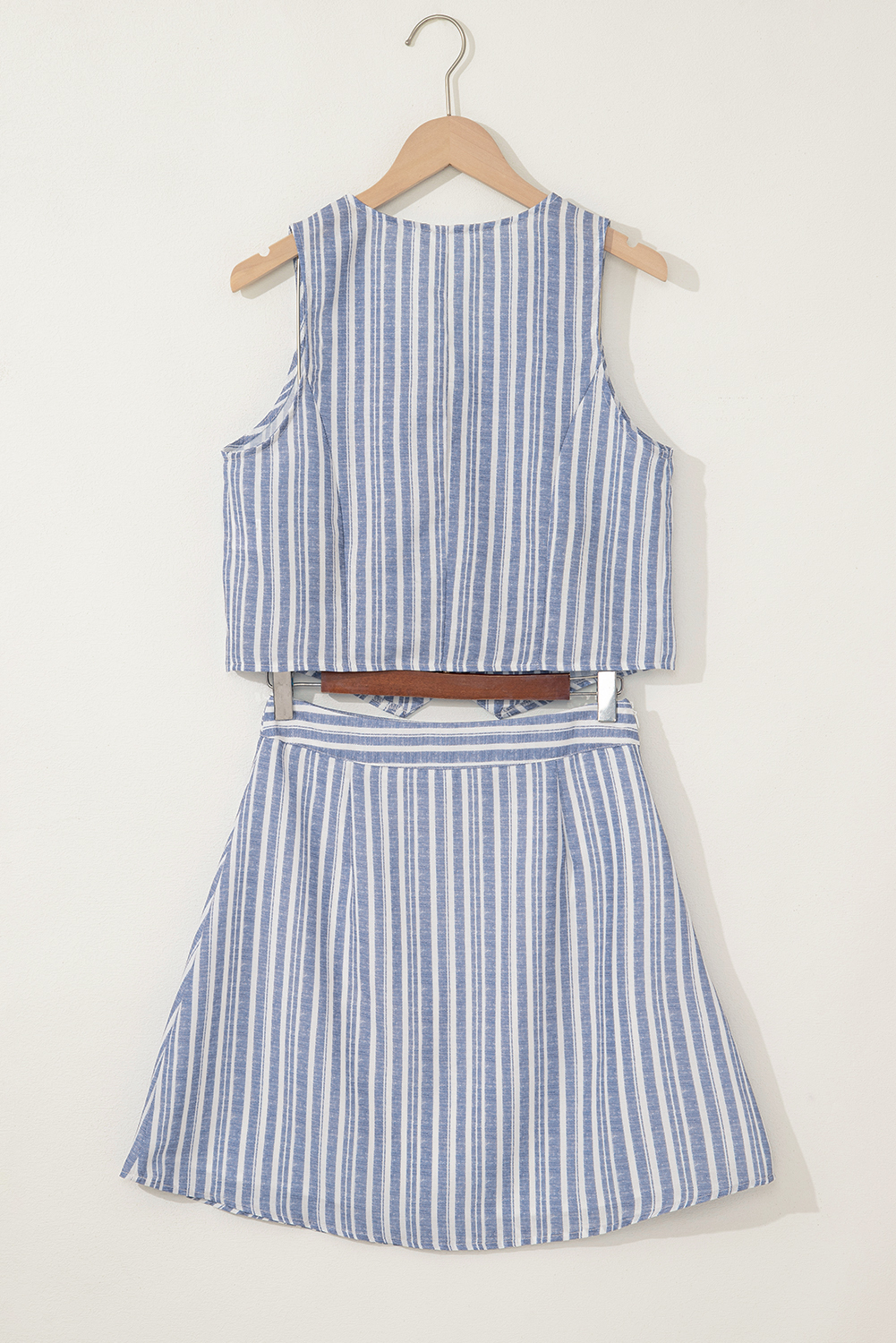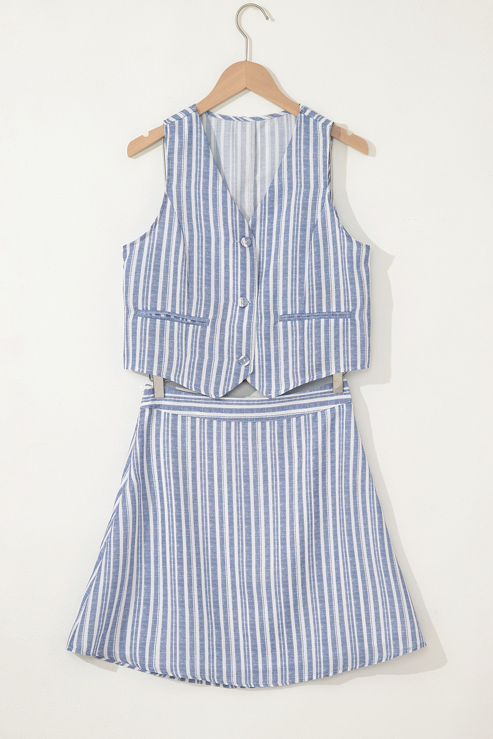 Sky Blue Stripe Buttoned Office Waistcoat Mini Skirt Set