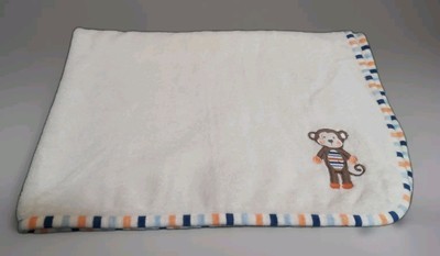 Babies R Us Cream Monkey Orange Blue Stripe Trim Security Baby Blanket