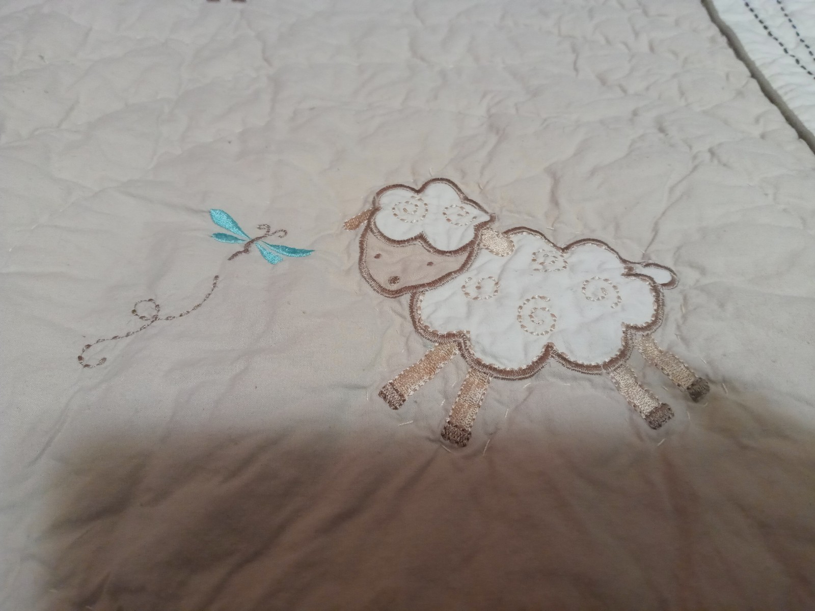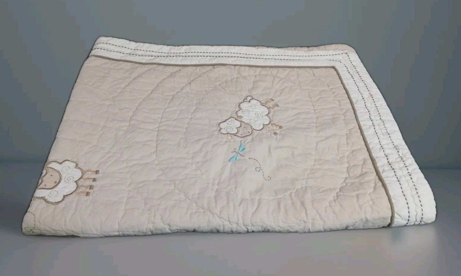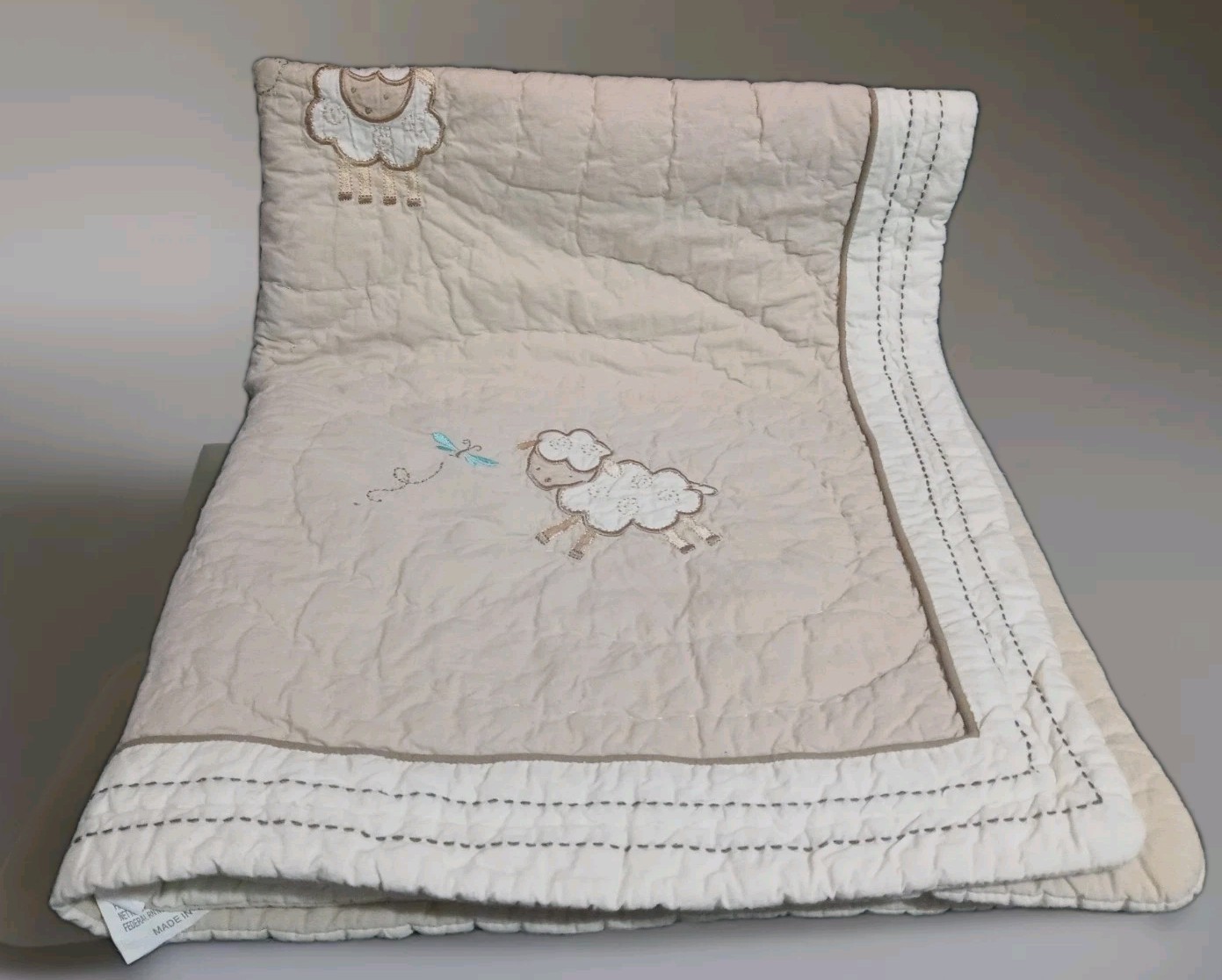 Geoffrey Toys R Us Beige Tan Sheep Lamb 34"x 43" Cotton Quilt Baby Blanket