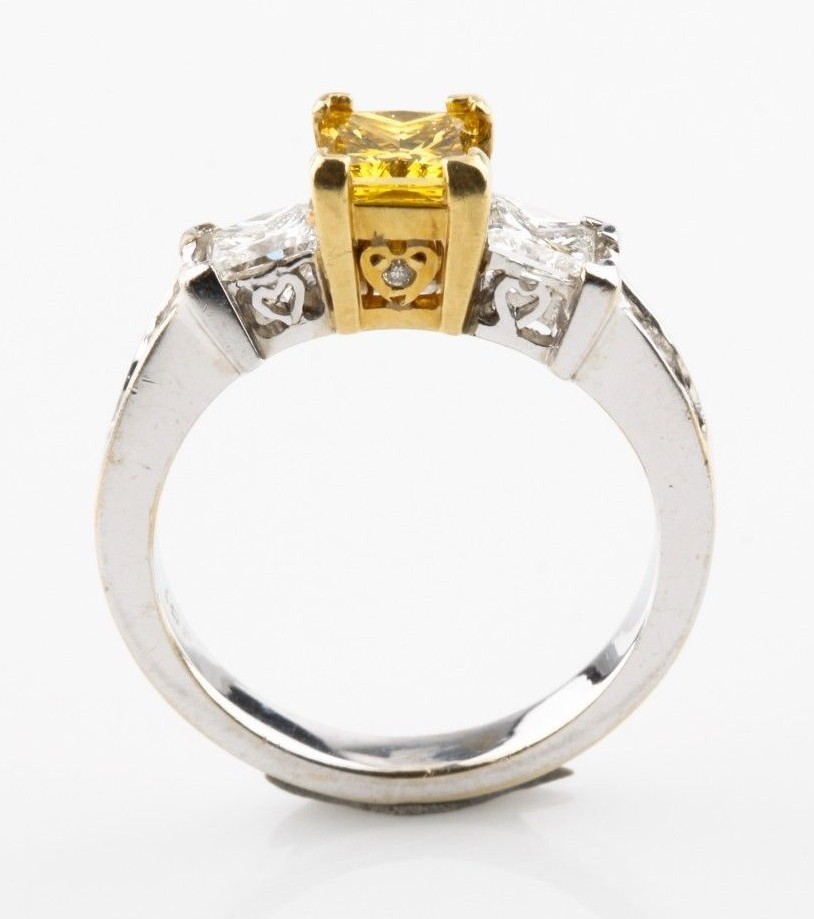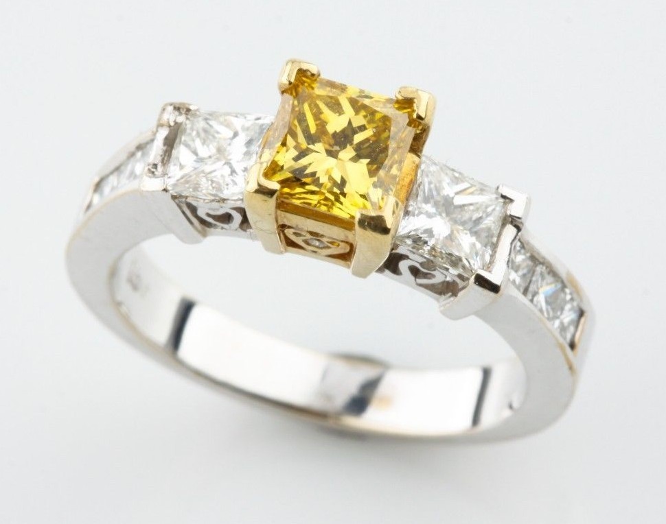 Fancy Yellow 1.30 carat Princess Cut Diamond 3 Stone 18k Gold Engagement Ring