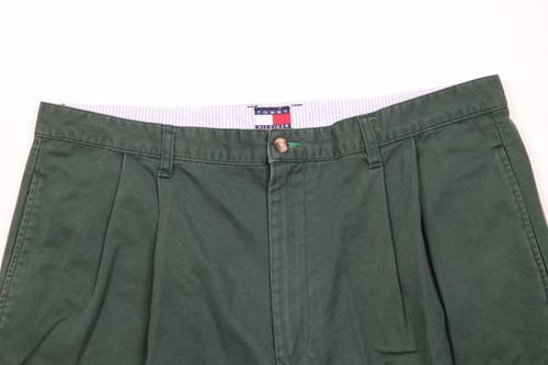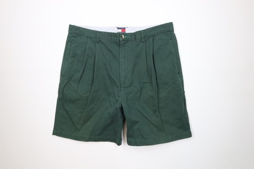 Vintage 90s Tommy Hilfiger Mens 40 Faded Pleated Golf Chino Shorts Green Cotton