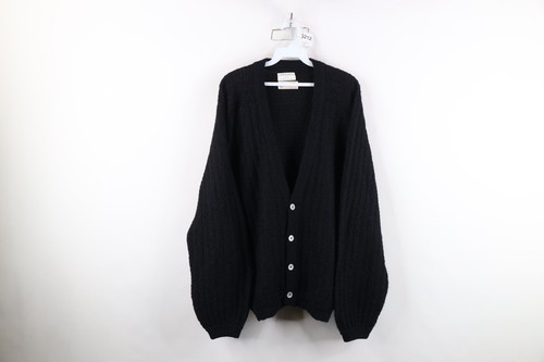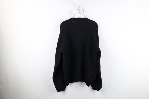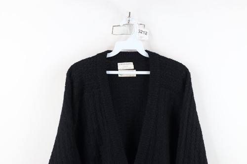 Vtg 50s 60s Rockabilly Mens L Heavy Mohair Wool Knit Cardigan Sweater USA Black