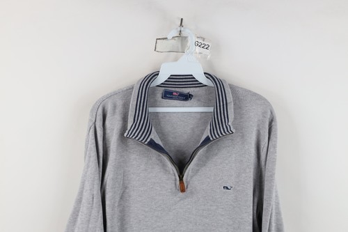 Vineyard Vines Mens Medium Whale Logo Cotton Ribbed Knit Half Zip Sweater Gray