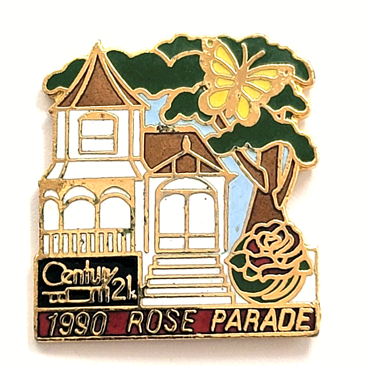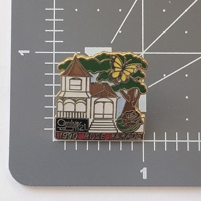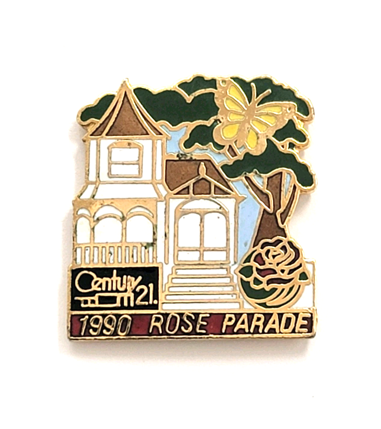 1990 Rose Parade Century 21 Victorian House Butterfly Tree Enamel Souvenir Pin