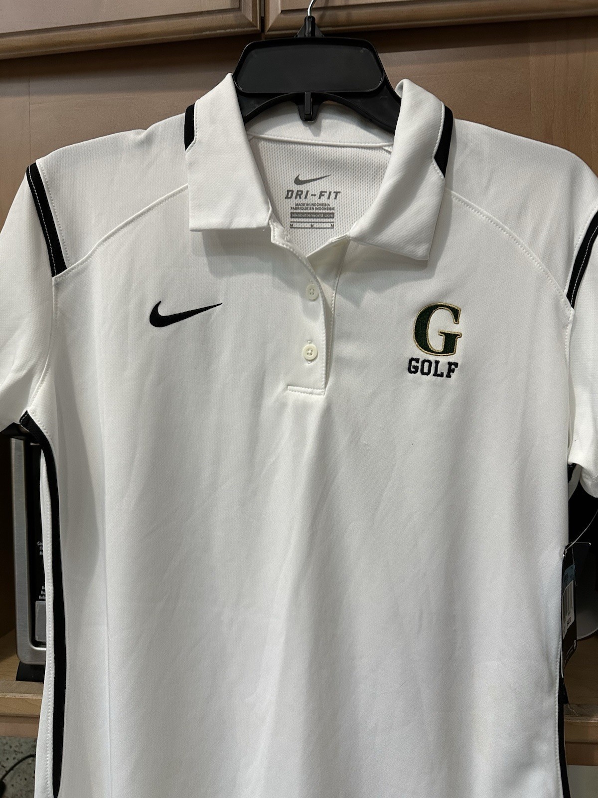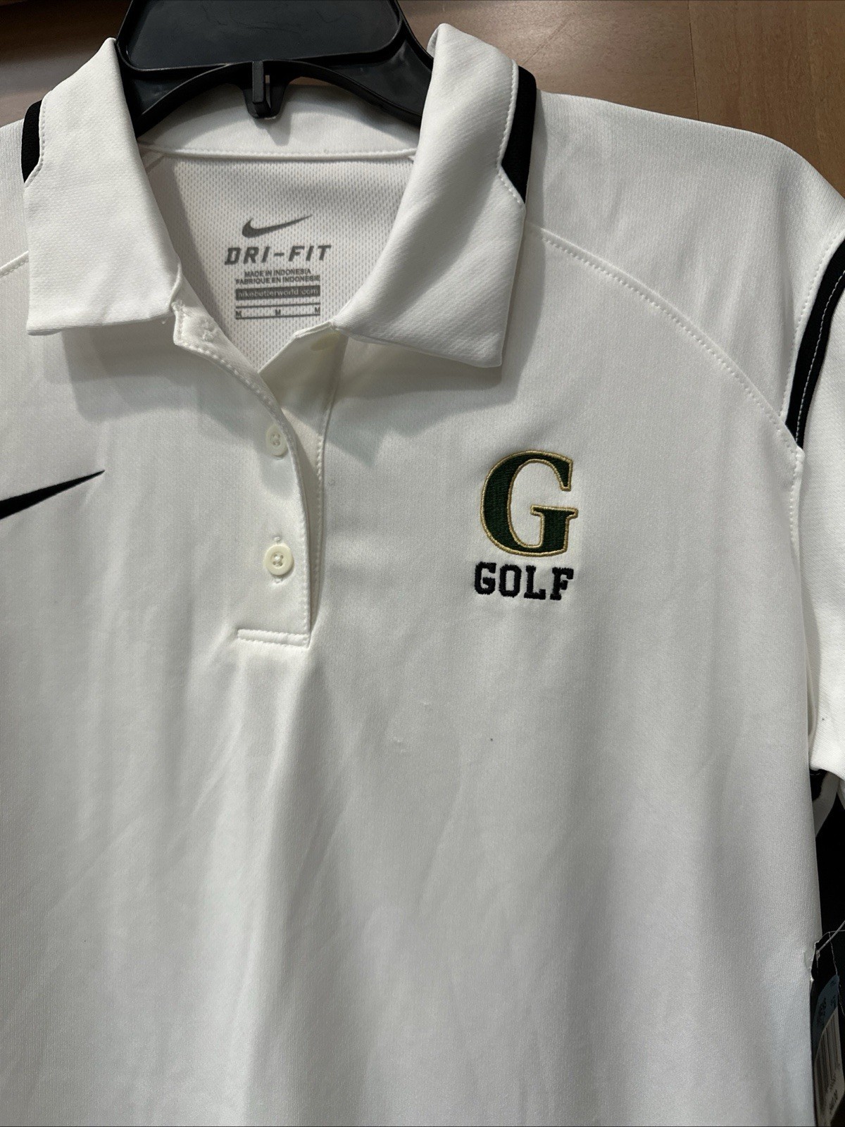 Nike Dri Fit Women’s Medium Golf Polo Shirt S/Sleeve White/Blk Trim Logo NWT $40