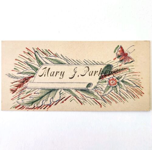 C1900s Victorian Business Card Mary J Parker Lithograph Small 3.5 x 1.75" E88D