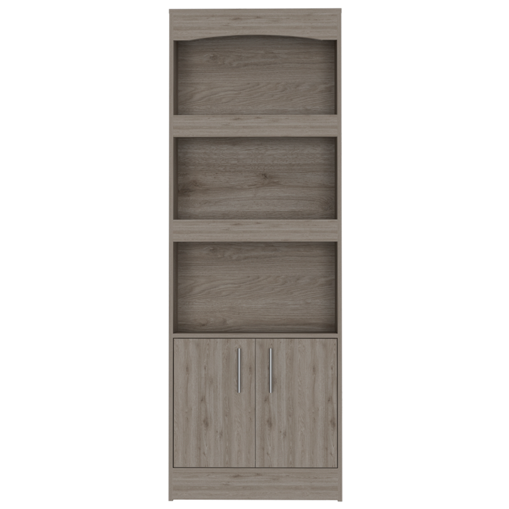 Light Gray 3-Shelf Bookcase with Double Door Storage Cabinet