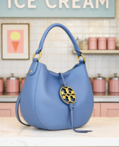 You Are Looking At A Very Practical Bluewood Full-Grain Leather Miller Metal Logo Mini Hobo/Tote Bag By Tory Burch