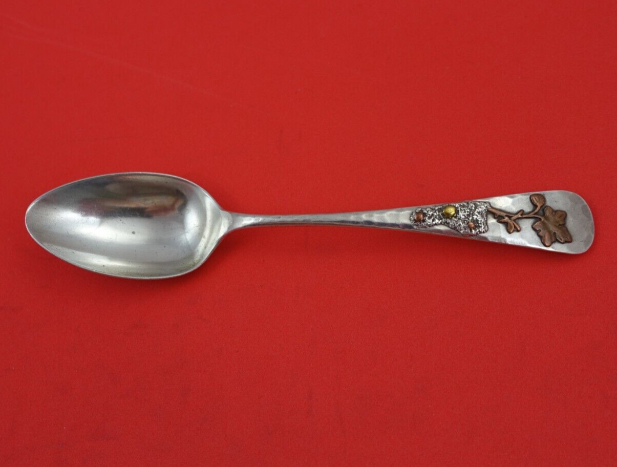 Wonderful Gorham sterling silver aesthetic Teaspoon 6" with applied copper plant with leaf, silver sand, and gold pebble. It is monogrammed on the reverse (as shown) and is in excellent condition. Wonderful! Museum quality.