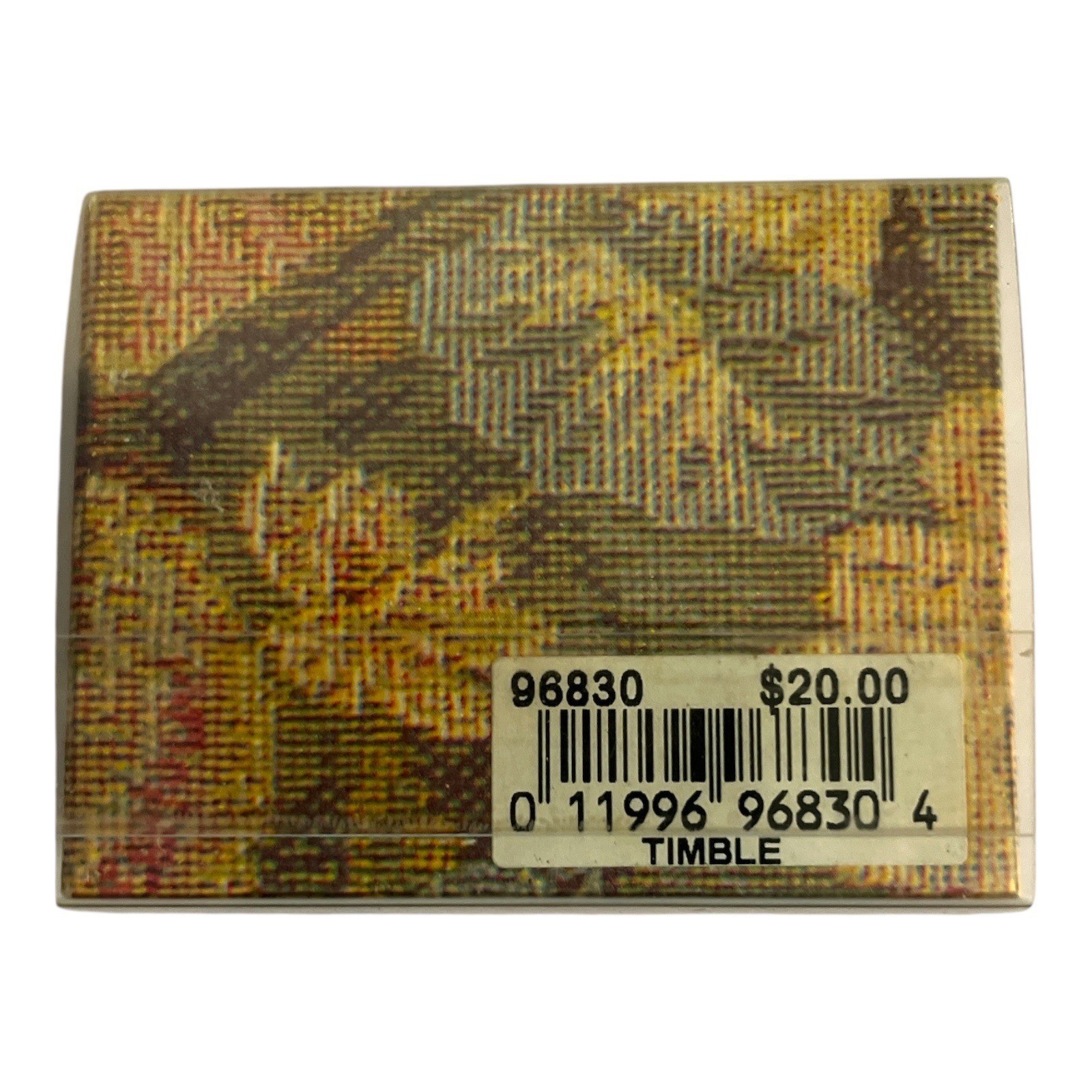 The back of the box retains the original \$20 price sticker and barcode. Inside of the thimble is stamped with model number 65909.