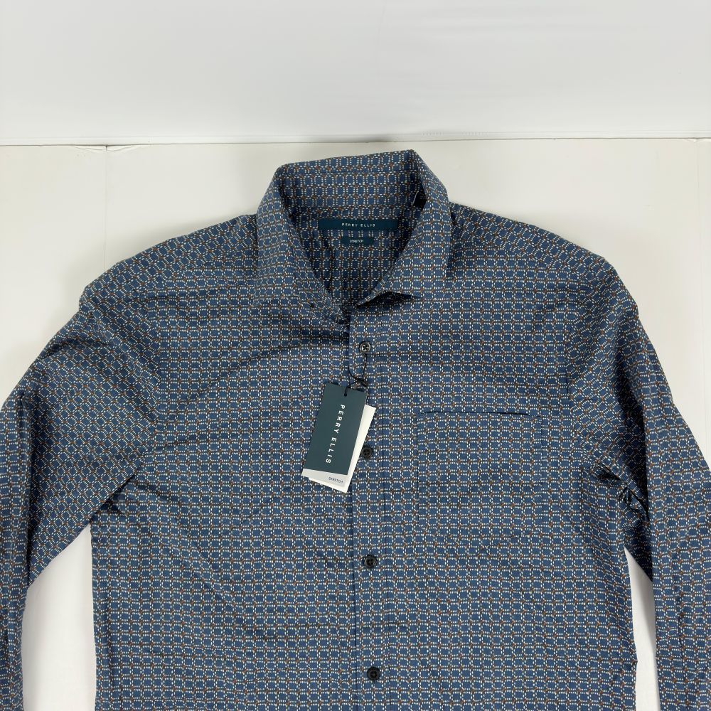 Perry Ellis Men's Micro Chain-Pattern Stretch Shirt - Dark Denim-Small