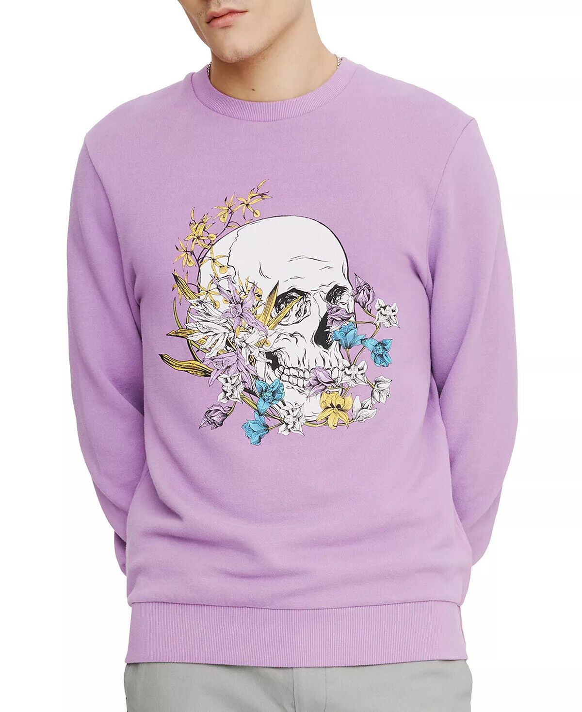 Eleven Paris Men's Floral Skull Fleece Sweatshirt in African Violet - Size 2XL