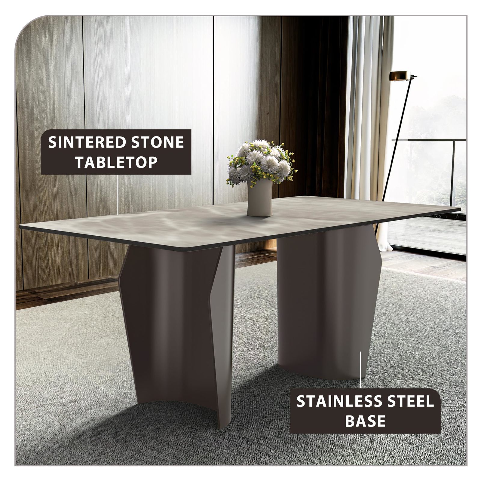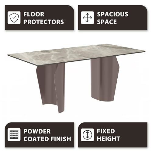 Experience the perfect fusion of style and practicality with our LeisureMod Zelan Mid-Century Modern Dining Table. This meticulously crafted table effortlessly combines mid-century flair with modern functionality, creating a timeless yet contemporary centerpiece for your dining area. With its spacious rectangular tabletop and sleek semi-circular steel legs, it adds both stability and sophistication to any space, making it a stylish addition to your home decor. The modern dining table features a rectangular tabletop crafted from durable materials such as glass or sintered stone, known for their stylish appearance and lasting durability. This ensures the table not only looks great but also serves its purpose effectively. With its sturdy build, it can withstand daily use while maintaining its elegant appeal, making it a perfect addition to your dining space. The dining table is crafted with robust steel legs, providing both strength and stability along with a sleek modern design. Steel is renowned as one of the most innovative and essential materials globally, and we're proud to utilize it. Infinitely recyclable and exceptionally strong, steel offers numerous sustainable benefits. With its durable construction and timeless design, this dining table is not only stylish and built to last but also environmentally conscious, making it a perfect addition to your furniture. Features a rectangular tabletop and semi-circular steel legs, the dining table measures 29.52 inches in height, 55.11/62/70.86 inches in width, and 31.50/35.43 inches in depth. This design is carefully crafted to optimize dining space, making it suitable for both intimate family meals and larger gatherings. The Zelan dining table collection is designed to be versatile and user-friendly, making it suitable for various spaces in your home or office. Whether you need it as a dining table, a work desk, or even a conference table, this piece seamlessly adapts to different environments, including dining rooms, pantry rooms, kitchens, restaurants, and offices. Its multi-functional design provides exceptional value for your investment, allowing you to customize its usage according to your specific needs and preferences with ease. Features a premium glass or stone tabletop paired with sturdy steel legs, offering both durability and elegance. The smooth surface of the tabletop and the steel legs make cleaning effortless; simply wipe with a damp cloth to remove any stains or spills, ensuring that the dining table remains pristine and stain-resistant even after extended use. Its simple structure ensures easy assembly, requiring only partial assembly. Clear instructions and all necessary parts are provided for your convenience.