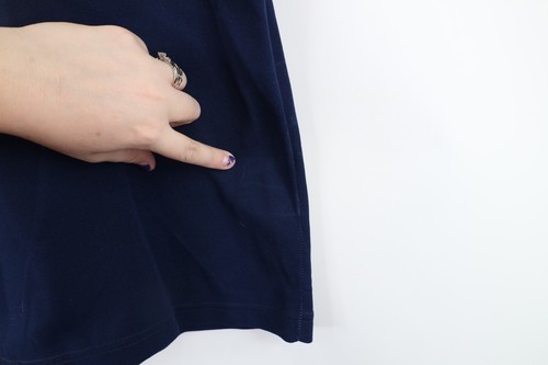 Blemishes on the bottom sides. Missing stitching along the waist hem. Graphic is distressing. USA made