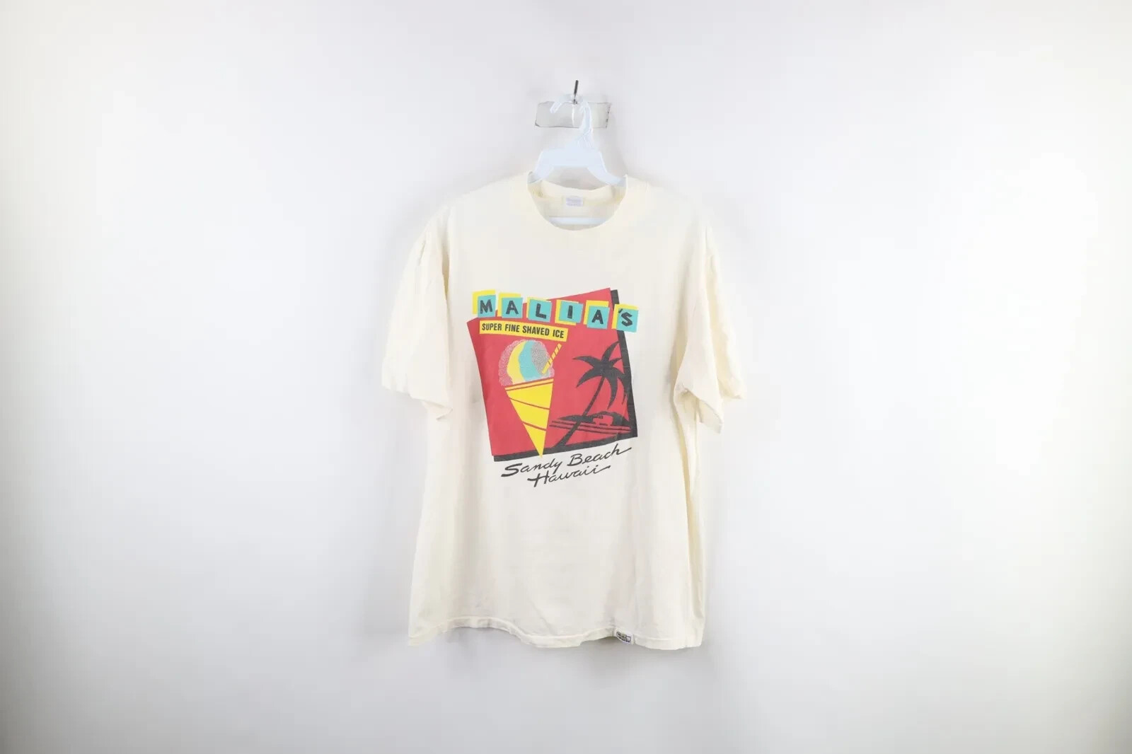 Vtg 70s Streetwear Mens Large Distressed Malias Shaved Ice Hawaii T-Shirt USA