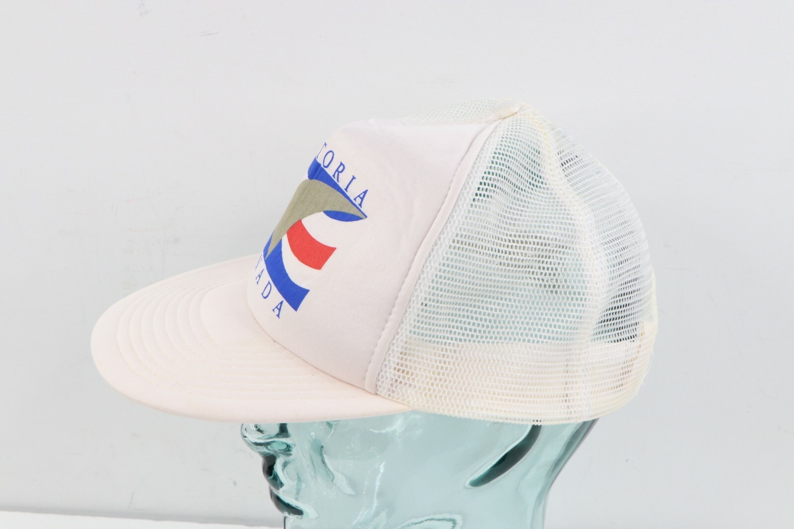 Vintage 80s Streetwear Victoria Canada Spell Out Trucker Hat Snapback White