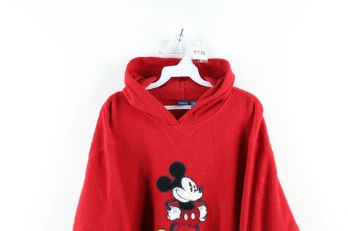 Vintage Disney Womens XL Spell Out Mickey Mouse Fleece Hoodie Sweatshirt Red