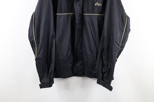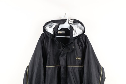 Vintage 90s Asics Mens Large Spell Out Waterproof Hooded Rain Jacket Coat Black