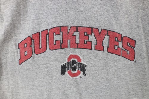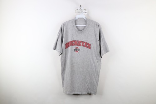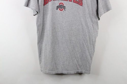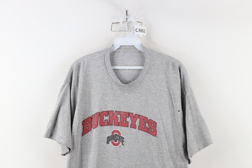 Vintage 90s Mens Large Thrashed Spell Out Ohio State University T-Shirt Gray